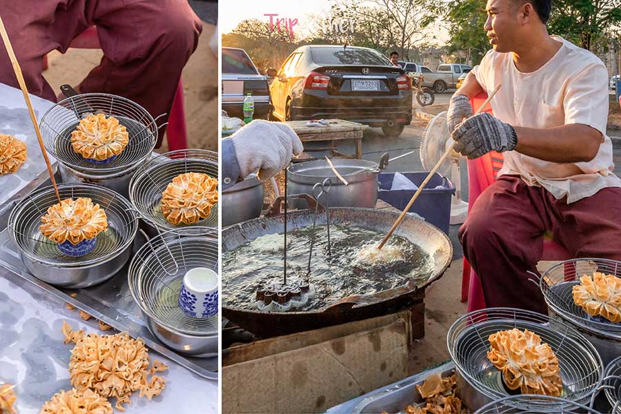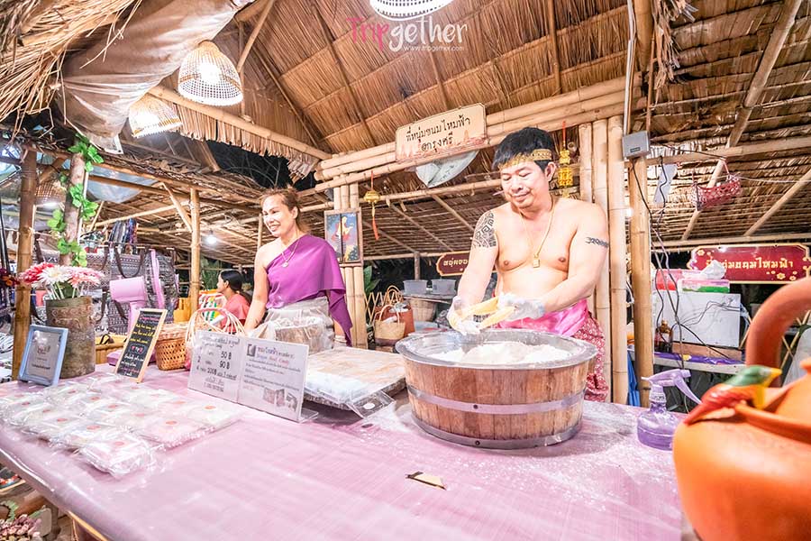 ส่วนเมนูโบราณแปลกตาก็มีเพียบ อย่าง ถั่วกระจก ขนมดอกจอก รวมถึงขนมไหมฟ้าจากประเทศจีน ที่ทำโชว์กันแบบสดๆ ชิมก่อนซื้อได้ทุกร้าน