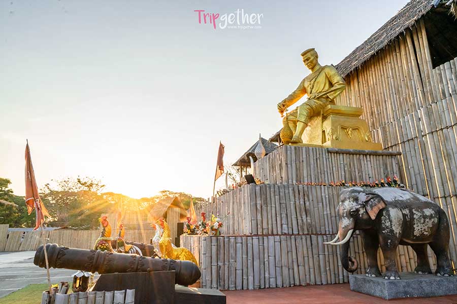 ส่วนด้านในสุดจะเป็นลานกว้าง และใจกลางมีอนุสาวรีย์องค์สมเด็จพระนเรศวรตั้งเด่นสง่าให้สักการะกัน แถมยังมีการแสดงบู๊ให้ชมกันเพลินๆ ด้วยนะ
