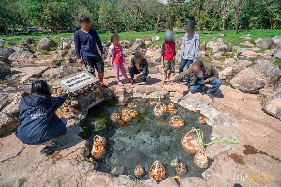 แน่นอนว่าเมื่อมาเที่ยว อุทยานแห่งชาติแจ้ซ้อน ลำปาง นอกจากการไปถ่ายรูปเช็คอินตามจุดไฮไลท์ยอดนิยมแล้วนั้น หนึ่งในกิจกรรมที่ใครมาถึงก็จะต้องทำกันนั่นก็คือ นำไข่ไปลวกในบ่อน้ำพุร้อน ซึ่งภายในอุทยานฯมีจุดให้ลวกไข่ได้หลายจุดเลย โดยเจ้าหน้าที่ห้ามนำถุงพลาสติกและกระเช้าหรือวัสดุที่ทำมาจากพลาสติกลงไปแช่ในบ่อน้ำพุร้อนอย่างเด็ดขาด ให้นำไข่ใส่ตะกร้าไม้ไผ่เพื่อสุขภาพเท่านั้น! ว่ากันว่าไข่ออนเซ็นที่ได้จากน้ำพุร้อนมีลักษณะและรสชาติแปลกใหม่ไม่เหมือนที่ไหนเลย ใครอยากรู้ต้องมาลองด้วยตัวเอง