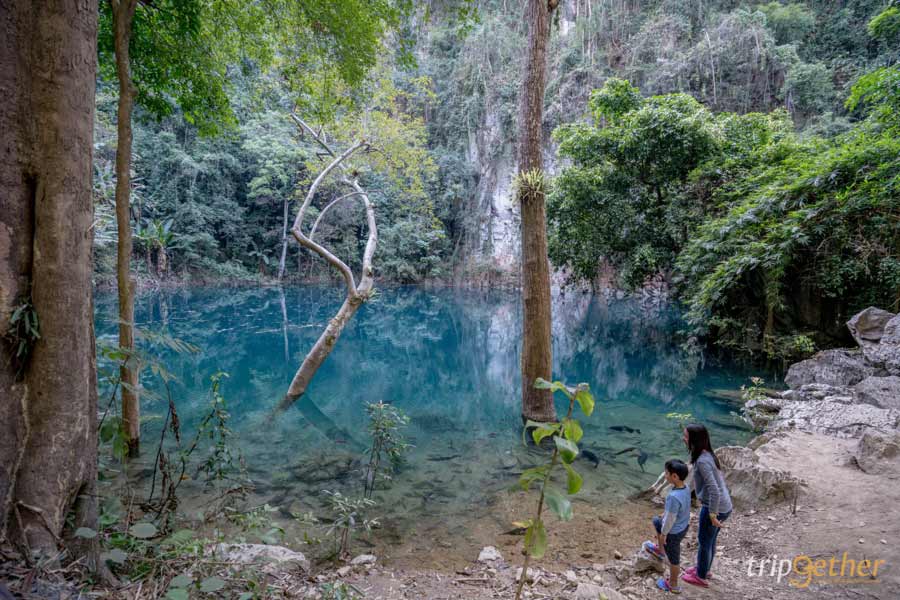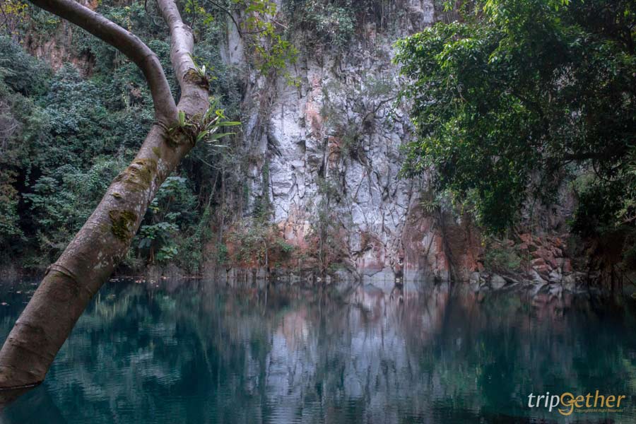 แต่ในทางธรณีวิทยามีการสันนิษฐานว่าสีที่มรกตที่สวยสดของที่นี่เกิดจากการยุบตัวของเปลือกโลกในอดีต หรืออาจเกิดจากการยุบตัวของหินปูนซึ่งเคยเป็นเพดานถ้ำมาก่อน แล้วจมลงใต้น้ำ เรียกว่า หลุมยุบ จึงทำให้กลายเป็นหลุมหรือหล่มน้ำขังนั่นเอง นอกจากนี้น้ำยังใสมากจนสามารถมองเห็นฝูงปลาที่อาศัยอยู่ภายในแหล่งน้ำได้แบบสบายๆ