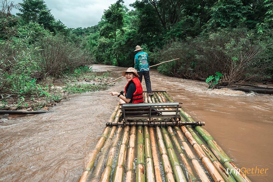 เราเลือกพักห้องริมน้ำ ชื่อว่า บ้านริมน้ำ เป็นบ้านพัดลมนะ แต่อากาศสดชื่น ปลอดโปร่ง เย็นสบาย ไม่ต้องใช้เครื่องปรับอากาศเลย พอเราได้ห้องพักสำหรับคืนนี้แล้ว เราเตรียมไปทำกิจกรรมเที่ยวเมืองคองอย่างการ ล่องแพไม้ไผ่ ชมวิวธรรมชาติสองข้างทางไปตามลำน้ำแม่คอง