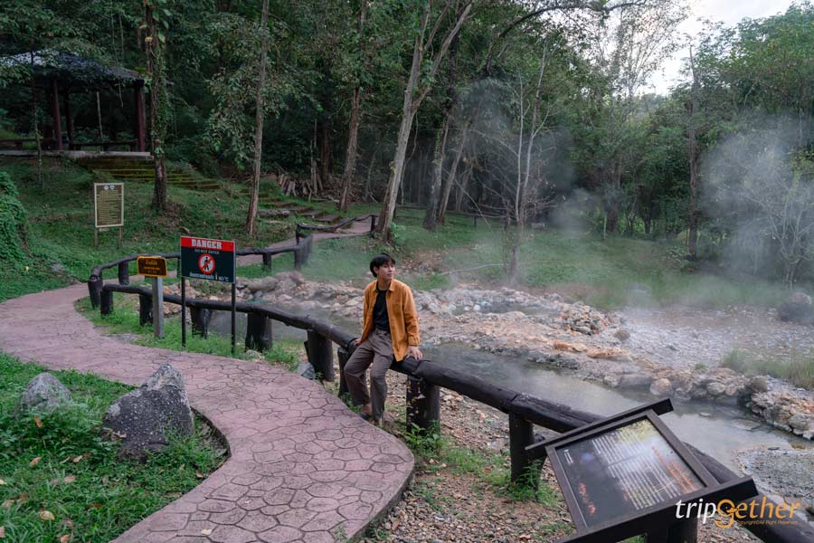 น้ำที่ไหลผ่านบริเวณนี้ เป็นน้ำร้อนทั้งหมดเลย กลิ่นกัมมะถันอบอวนหน่อย