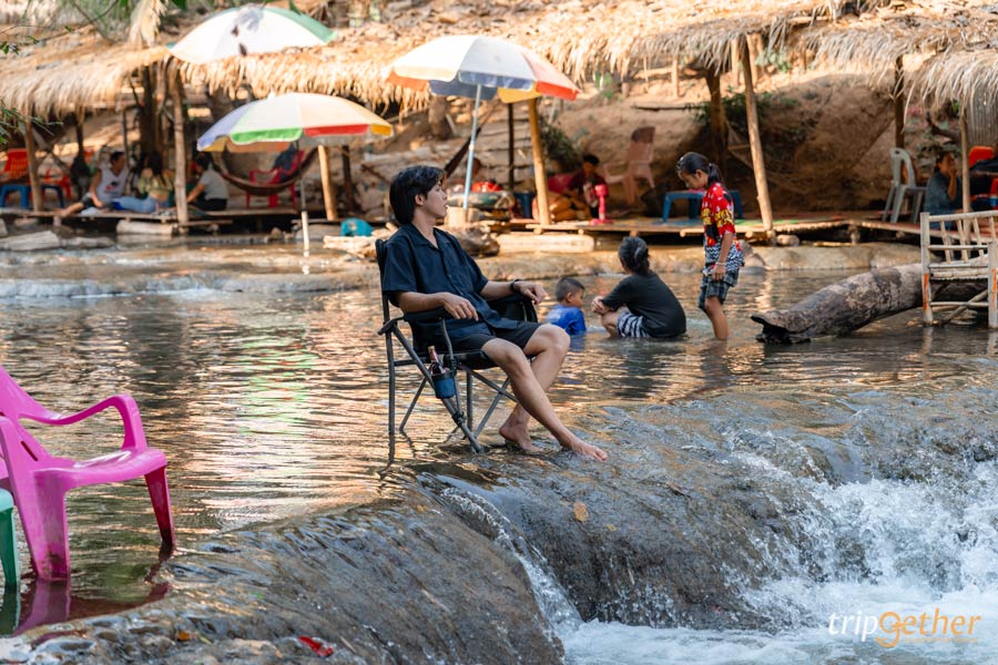 บ้านสวนริมธาร ที่เที่ยวขอนแก่นสุดชิลล์ที่เหมาะกับการมานั่งชิลล์ๆ เอาเท้าแช่น้ำ ในพื้นที่ขอบ้านสวนริมธารเป็นทั้งแปลงเกษตร สวน ร้านอาหาร และที่เป็นไฮไลท์เลยก็คือซุ้มที่นั่งริมน้ำที่สามารถสั่งอาหารมานั่งกินได้แบบสบายๆ ซึ่งเมนูอาหารส่วนใหญ่จะเป็นอาหารอีสานไปจนถึงอาหารตามสั่งทั่วไป นอกจากนี้ยังสามารถลงเล่นน้ำหรือจะเอาเก้าอี้ไปนั่งกลางลำธารก็ได้ ถือเป็นอีกหนึ่งที่เที่ยวที่แนะนำให้มาเลย