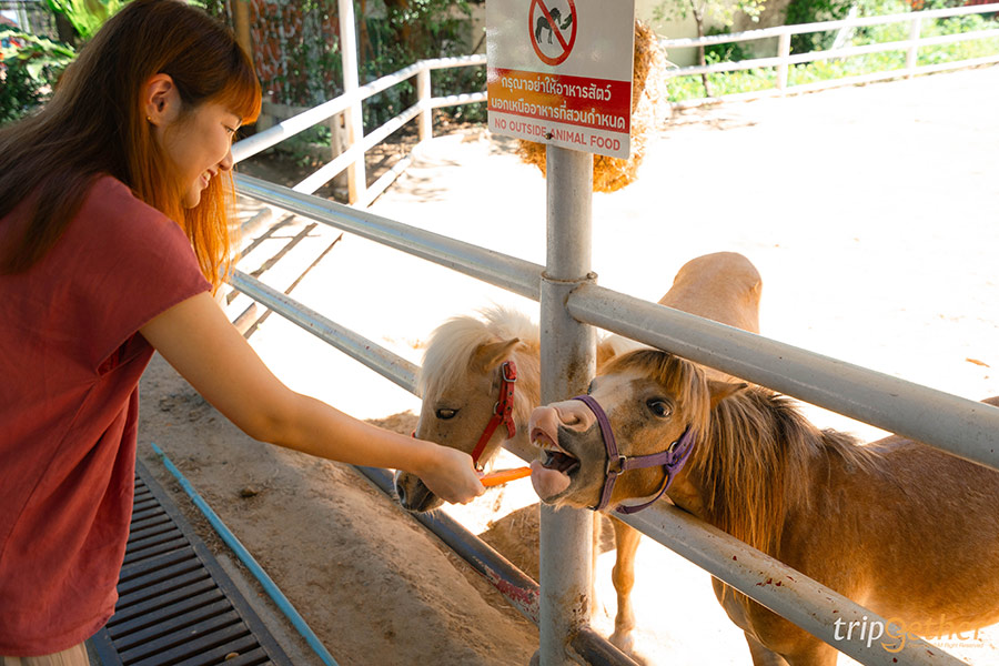 ส่วนค่าเข้าผู้ใหญ่ 150 บาท และค่าเข้าเด็กความสูง 100 – 140 ซม. 80 บาท หลักจากได้บัตรเข้าชมมา ก็สามารถเอาไปแลกอาหารสัตว์ แบ่งเป็นแครอท 1 ถุง และเมล็ดทานตะวัน 1 ถุง (สำหรับนก)
