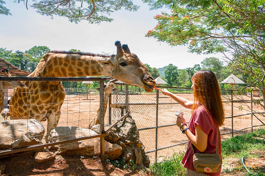 ถัดจากกรงนก คือ โซนยีราฟ เป็นอีกไฮไลท์ที่ต้องมาเช็คอิน บริเวณนี้เราสามารถให้อาหารและถ่ายรูปกับยีราฟได้อย่างใกล้ชิด โดยอาหารที่เราป้อนได้ก็คือแครอท สำหรับเรารู้สึกว่ายีราฟที่นี่กินเรียบร้อยมาก น้องจะค่อยๆ กินจากมือ ทุกตัวเป็นมิตร พร้อมเดินเข้าหาคน บอกเลยว่าเตรียมโพสถ้าสวยๆ ได้รูปคู่น้องกลับไปแน่นอน
