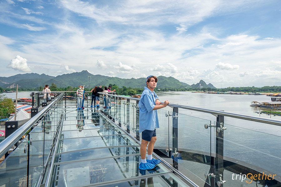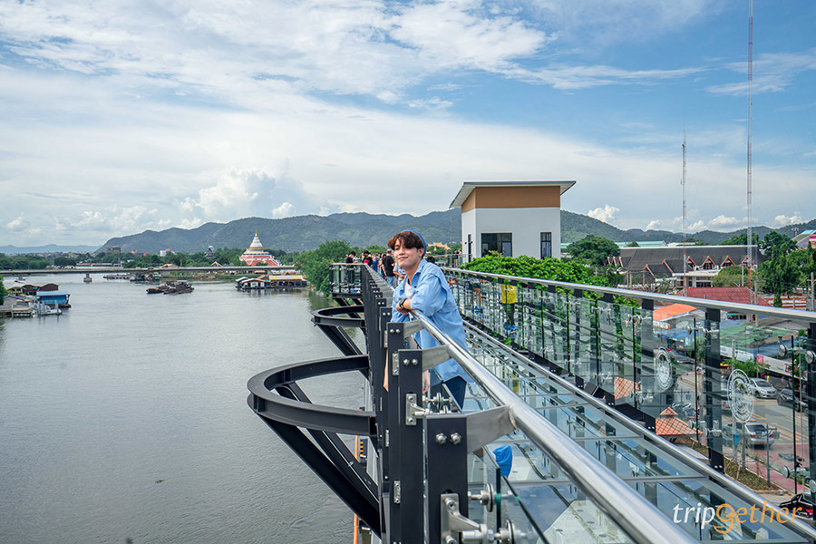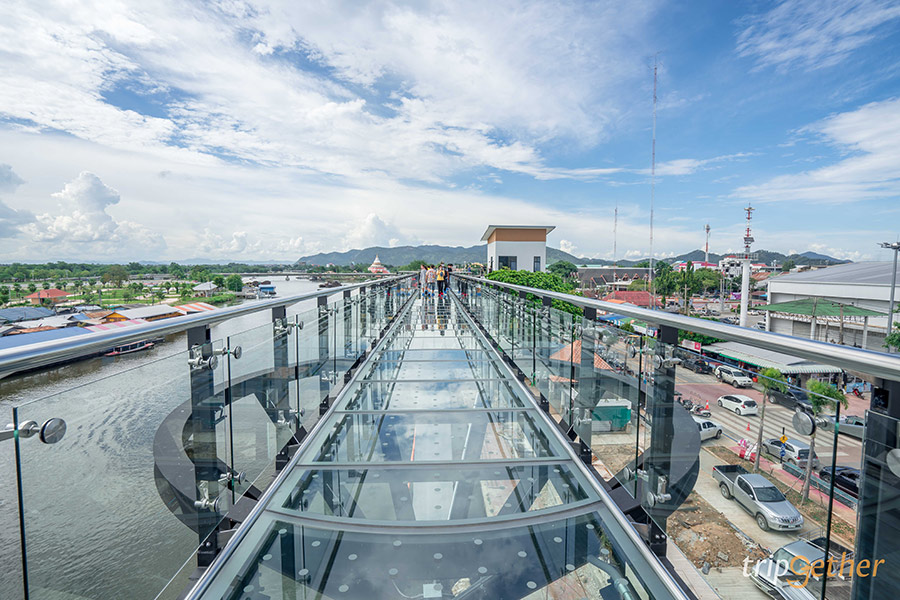 Skywalk กาญจนบุรี แลนด์มาร์กแห่งใหม่ริมแม่น้ำแควบนความสูง 12 เมตรจากพื้นถนน และความยาวของ Skywalk กาญจนบุรี อยู่ที่ 150 เมตร ตลอดริมแม่น้ำ ตัวพื้นของ Skywalk กาญจนบุรี ทำจากกระจกใสแข็งแรง ตลอดทางเดินสามารถมองเห็นแม่น้ำด้านล่าง เมื่อเดินไปด้านซ้ายของสะพานจะสามารถมองเห็นแม่น้ำท้ังหมดสามสายด้วยกันคือ แม่น้ำแควใหญ่ แม่น้ำแควน้อยที่มาบรรจบกันและกลายเป็นแม่น้ำแม่กลอง เป็นไฮไลท์พิเศษของที่นี่เลย ส่วนทางด้านขวาของสะพานจะสามารถมองเห็นวิวของหอพระประวัติสมเด็จพระญาณสังวร สมเด็จพระสังฆราช สกลมหาสังฆปรินายก ซึ่งเป็นอีกหนึ่งสถานที่สำคัญของจังหวัดกาญจนบุรี