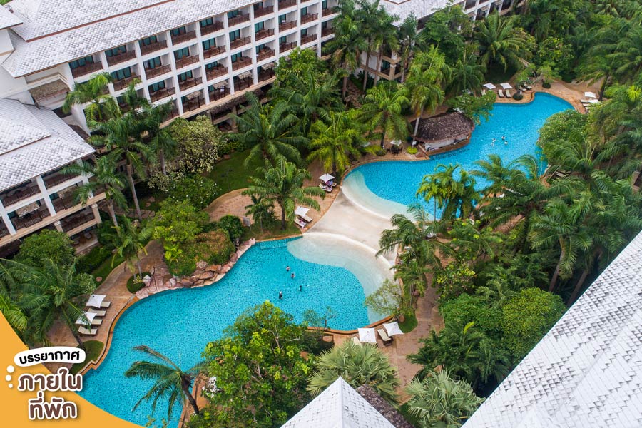 บรรยากาศภายในโรงแรม ร่มรื่นสุดๆ เดินไปอีกนิดก็ถึงชายหาดแล้ว