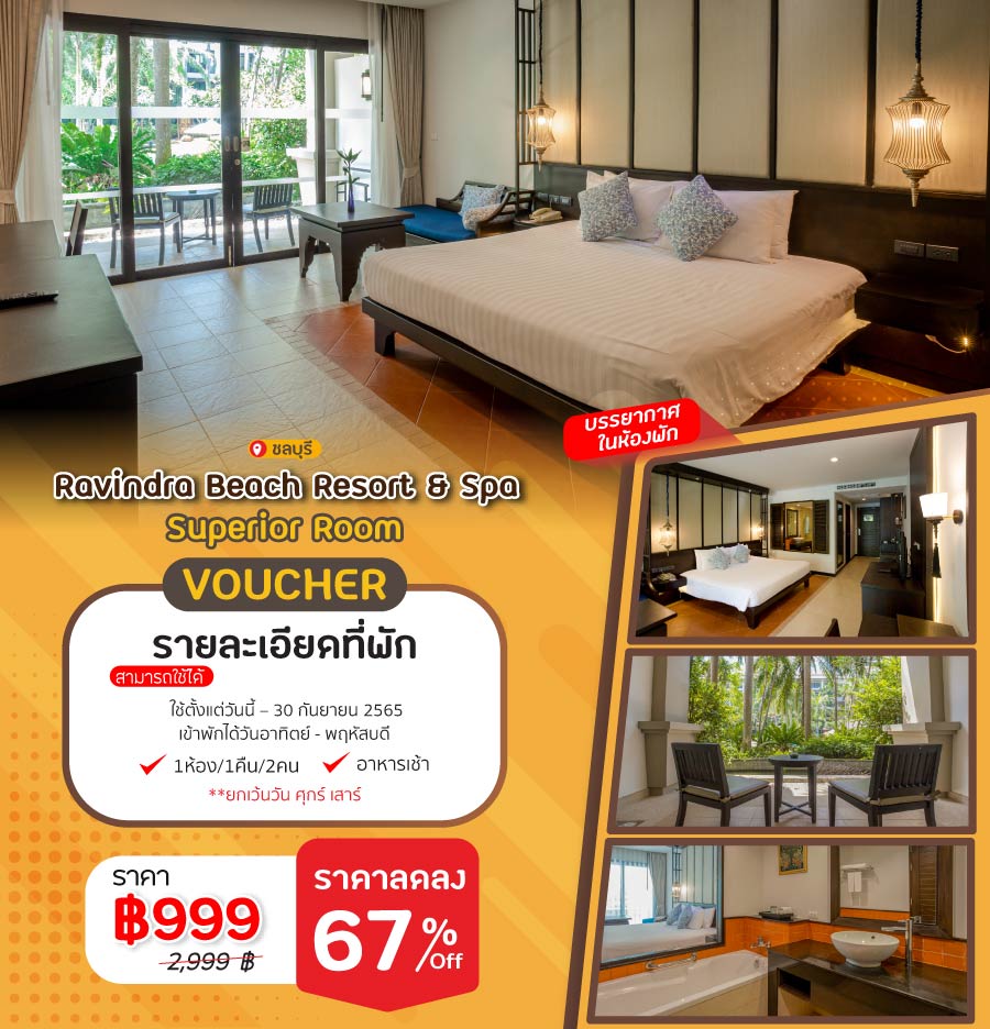 ราวินทรา บีช รีสอร์ท แอนด์ สปา (Ravindra Beach Resort & Spa) โรงแรมหรู บรรยากาศดี วิวสวยริมหาดจอมเทียน จังหวัดชลบุรี ภายในห้องพักตกแต่งสไตล์ luxury สวยงามเกินคำบรรยาย มีสิ่งอำนวยความสะดวกมากมาย และมีบริการต่างๆ เพิ่มเติมไม่ว่าจะเป็นห้องอาหาร สระว่ายน้ำ ฟิตเนส โยคะ หรือใครสนใจอยากนวดที่นี่ก็มีให้พร้อม รวมไปถึงบรรยากาศริมทะเลของหาดจอมเทียน ให้ได้ผ่อนคลายในวันพักผ่อนของคุณ