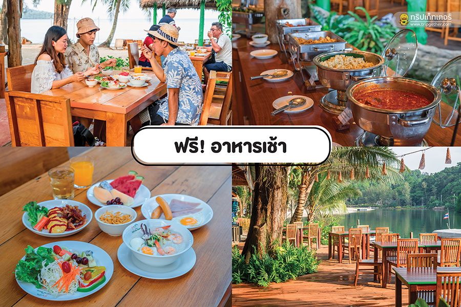 อาหารเสิร์ฟแบบไลน์บุฟเฟ่ต์ สามารถเลือกนั่งรับประทานอาหารได้ทั้งริมทะเลและริมน้ำ