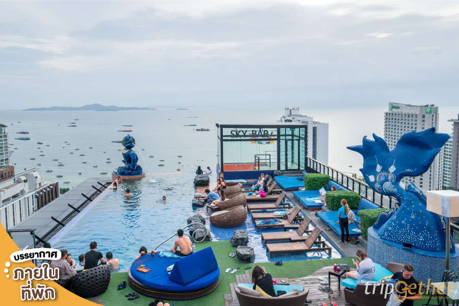 สระว่ายน้ำกลางแจ้ง และโซน Sky Bar ที่ไว้สนุกให้สุดเหวี่ยงทั้งวันทั้งคืน