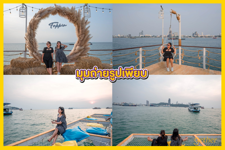 ทัพเพีย โฟลทติ้ง คาเฟ่ พัทยา (Tappia Floating Cafe Pattaya) คาเฟ่ตกหมึกบนเรือขนาดใหญ่ ที่จะพาคุณไปเปิดประสบการณ์สุดว้าวกลางทะเลพัทยา นั่งตกหมึกชิลล์ๆ ชมวิวทะเลแบบ 180 องศา และสามารถมองเห็นวิวเมืองพัทยาได้จากกลางทะเล แถมหมึกที่ตกได้บนเรือมีบริการทำซาชิมิแบบสดๆ พร้อมน้ำจิ้มรสเด็ดฟรี! ไม่เท่านั้นบนเรือยังตกแต่งไว้อย่างสวยงาม สามารถเดินเล่นถ่ายรูปกันได้แบบจุกๆ ขอบอกว่าช่วงพระอาทิตย์ตกเป็นอีกหนึ่งไฮไลท์ที่พลาดไม่ได้ เพราะว่าแสงสวยและบรรยากาศโรแมนติกสุดๆ แล้วถ้าใครรู้สึกหิวไม่ต้องกังวลไป บนเรือมีร้านอาหารและเครื่องดื่มเปิดให้บริการอยู่ด้วยจ้า ในส่วนของการเดินทาง ทางร้านมีเรือสปีดโบ๊ทที่ท่าเรือเร็วที่ 1 ของท่าเรือแหลมบาลีฮายรอรับ-ส่ง โดยจะมีเรือรอบเป็นรอบๆ ใครชอบกิจกรรมชิลล์ๆ กลางทะเลไปเช็คอินกันได้เลย
