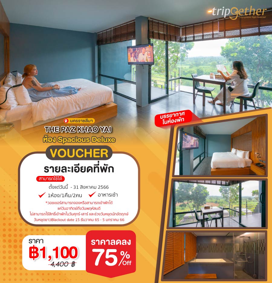 เดอะปาซ เขาใหญ่ (THE PAZ KHAO YAI) ที่พักเขาใหญ่บรรยากาศดี ดีไซน์ของที่พักมีการผสมผสานกันระหว่างความโมเดิร์นและความมินิมอล เรียบง่ายแต่ทันสมัย เดอะปาซ เขาใหญ่ ตั้งอยู่บนเนินเขาและรายล้อมไปด้วยวิวทิวทัศน์ของภูเขาโดยรอบ ไม่ว่าจะมองไปทางไหนก็เห็นความสวยงามของธรรมชาติได้อย่างแน่นอน ห้องพักของเดอะปาซเขาใหญ่มีทั้งหมด 68 ห้อง แบ่งออกเป็น 5 แบบด้วยกันคือ ห้อง Spacious Deluxe, Scenery Villa, Horizon Villa, Jacuzzi Villa และ Pool Villa ซึ่งห้องพักแต่ละห้องถูกออกแบบมาให้สามารถเห็นวิวสวยๆ เน้นความสงบและความเป็นส่วนตัวตรงตามคอนเซ็ปต์ของชื่อเดอะปาซเพื่อให้คุณได้พักผ่อนเติมพลังจากธรรมชาติได้อย่างเต็มที่