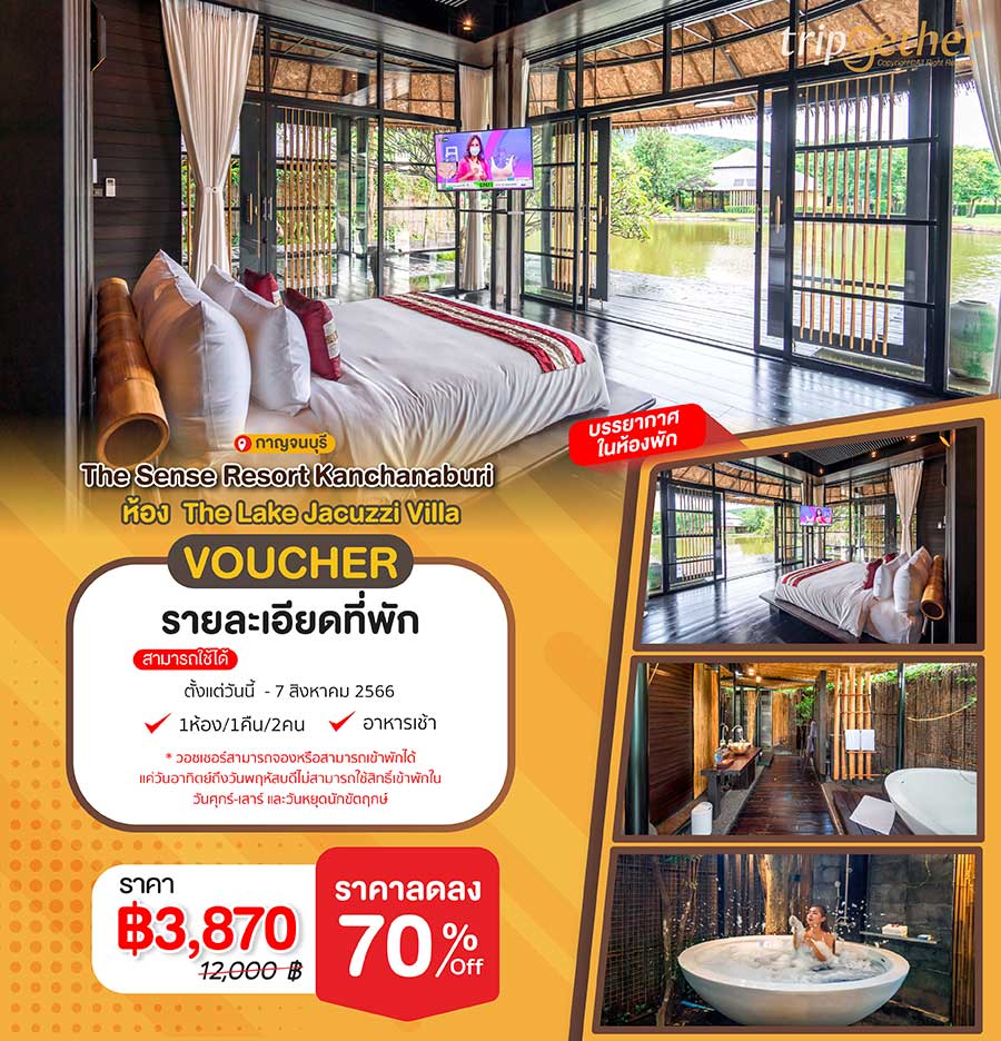 เดอะเซ็นส์ รีสอร์ท กาญจนบุรี (The Sense Resort Kanchanaburi) ที่พักสุดหรูบรรยากาศดีริมแม่น้ำแคว ที่เต็มไปด้วยความเงียบสงบเหมาะสำหรับการมาพักผ่อน และรายล้อมไปด้วยธรรมชาติบนเนื้อที่กว่า 43 ไร่ ตัวที่พักมีการออกแบบให้สอดคล้องไปกับธรรมชาติและมีความเป็นส่วนตัวในทุกๆ พื้นที่ ห้องพักของเดอะเซ็นส์ รีสอร์ท กาญจนบุรี มีทั้งหมด 20 หลัง แบ่งออกเป็นสองแบบ คือ The Jungle Villa เป็นวิลล่าที่มีทั้งหมด 12 หลัง สามารถพักได้ 2 คน วิลล่าในโซนนี้จะมาในคอนเซ็ปต์ของป่าที่เต็มไปด้วยต้นไม้ใหญ่แสนร่มรื่น และ The Lake Jacuzzi Villa เป็นวิลล่าที่มีทั้งหมด 8 หลัง สามารถพักได้ 2 คน วิลล่าโซนนี้จะเป็นวิลล่าที่มีวิวทะเลสาบอยู่หน้าห้องวิวดีแบบสุดๆ ซึ่งแต่ละหลังมีความเป็นส่วนตัวอย่างมาก นอกจากห้องพักสวยๆ แล้วที่นี่ยังมี The Secret Spa ที่ให้บริการนวดผ่อนคลายแก่ผู้เข้าพัก ไฮไลท์ของเดอะเซ็นส์ รีสอร์ท กาญจนบุรี กับสระว่ายน้ำแบบอินฟินิตี้พูลที่ยาวที่สุดในจังหวัดกาญจนบุรี มีความยาวถึง 99 เมตร ความลึกสูงสุดของสระนี้อยู่ที่ 130 เมตร เป็นสระว่ายน้ำสีน้ำเงินครามที่ทอดยาวเลียบไปกับแม่น้ำแคว ภายในที่พักก็ยังมีร้านอาหาร The Serene เป็นร้านอาหารของรีสอร์ทเลย ตัวร้านอาหารดีไซน์มาเป็นโดมไม้ไผ่ขนาดใหญ่แบบเปิดโล่งและยังสามารถมองเห็นวิวแม่น้ำแควได้แบบ 180 องศาอีกด้วย บอกเลยว่าการมาที่นี่จะทำให้ทุกคนรู้สึกถึงการพักผ่อนอย่างแท้จริง