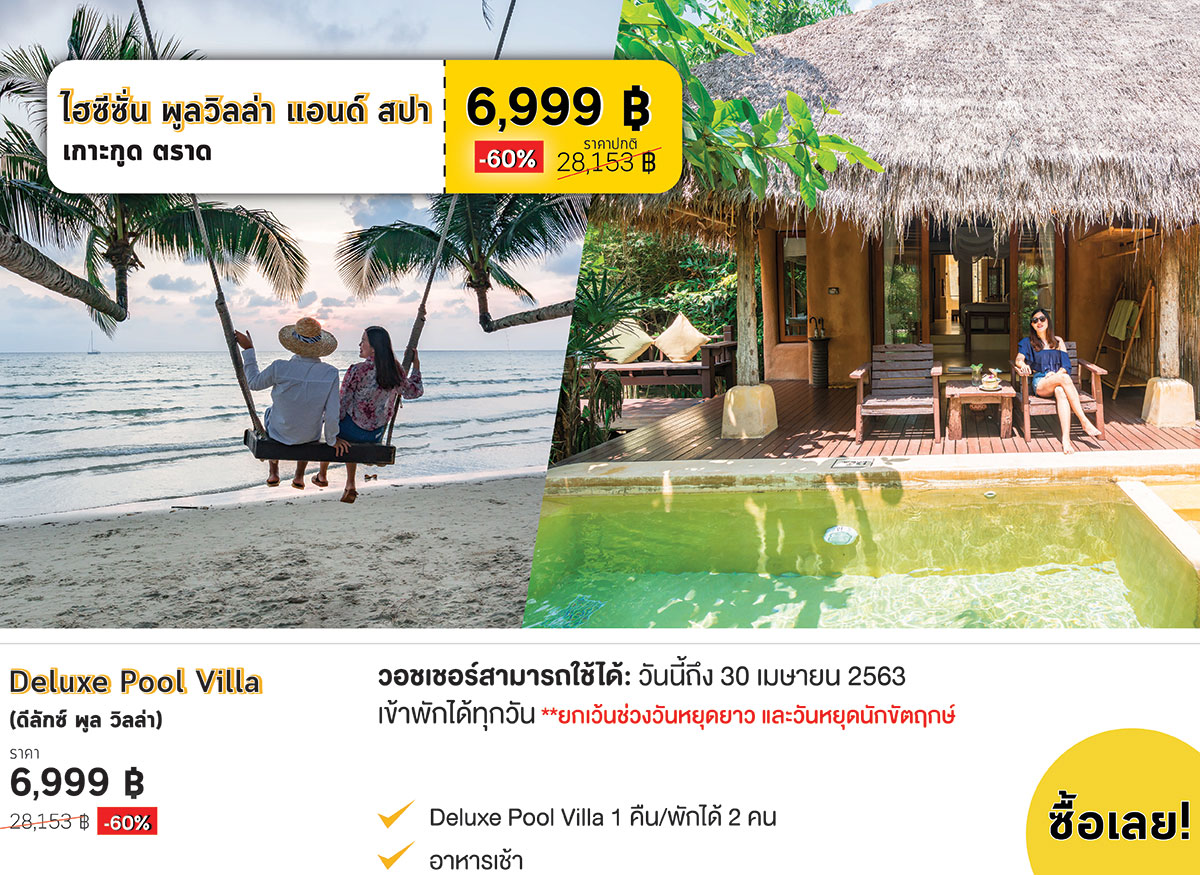– วอชเชอร์ห้องพัก Deluxe Pool Villa สำหรับ 2 คน/รวมอาหารเช้า