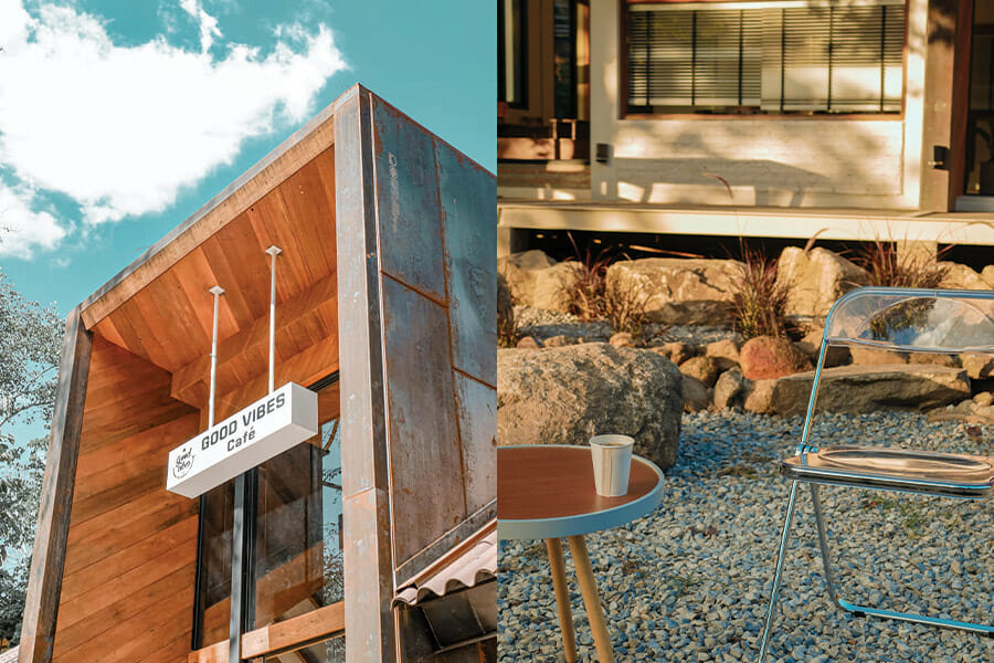 Goodvibes weather cafe สาขาใหม่ที่ตั้งอยู่ท่ามกลางขุนเขามีธารน้ำไหลผ่านดีต่อใจ ตัวร้านเน้นการตกแต่งสไตล์มินิมอลเน้นบรรยากาศโปร่งโล่งสบาย ให้ฟีลธรรมชาติสุดๆ อีกทั้งสามารถเลือกนั่งชิลล์ได้ทั้งโซน Indoor และ Outdoor ที่จะได้สัมผัสบรรยากาศธรรมชาติสดชื่นสุดๆ เมนูอาหารมีหลากหลายทั้ง เค้ก บราวนี่ ชีสเค้กหน้าไหม้ เครื่องดื่มเติมความสดชื่นอย่าง ส้มโซดา D Toffee, Rapper, T-RA, Dark Weather, Summer และอีกหลากหลายเมนูที่บอกเลยว่าปังมาก!