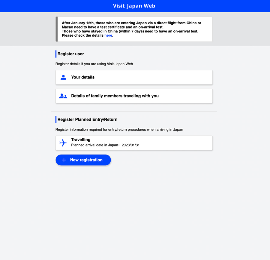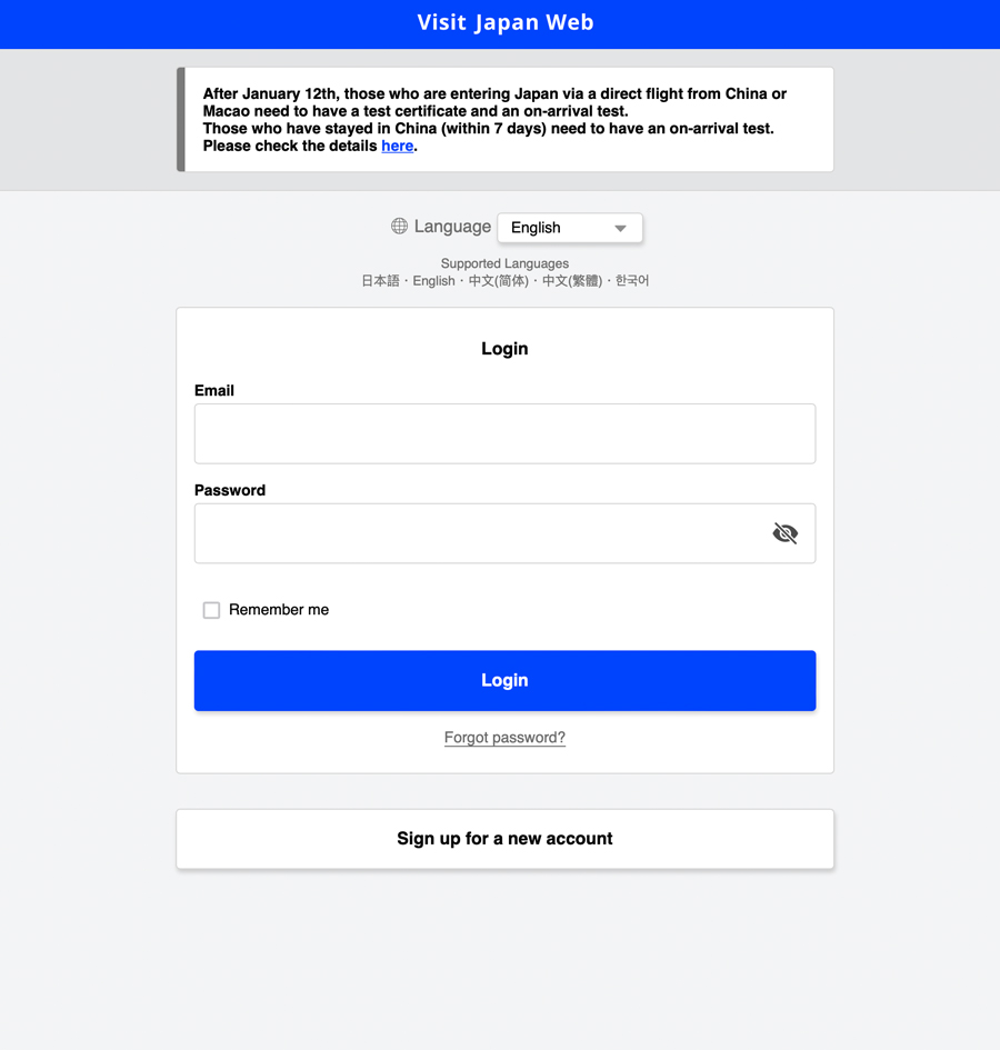 เพื่อประหยัดเวลาและขั้นตอนในการผ่านด่านตรวจคนเข้าเมือง (ตม.) ของประเทศญี่ปุ่น แนะนำให้ลงทะเบียนและกรอกข้อมูลการเดินทางเข้าประเทศญี่ปุ่นผ่านเว็บไซต์ www.vjw.digital.go.jp/main/ ซึ่งเป็นเว็บไซต์ของ ตม. ประเทศญี่ปุ่นล่วงหน้า โดยจะต้องกรอกข้อมูลส่วนตัว ข้อมูลด่านกักกัน ข้อมูลของศุลกากร รายละเอียดการเดินทาง (ไฟลท์บิน ที่พักในญี่ปุ่น ผู้ร่วมเดินทาง ระยะเวลาวันที่อยู่ จุดประสงค์ของการเข้าประเทศ) รวมทั้งเอกสารรับรองการฉีดวัคซีนแบบสากลที่สามารถขอผ่านแอปพลิเคชั่นหมอชนะได้ (สามารถศึกษาหรือดูคำอธิบายการกรอกข้อมูลแบบละเอียด ได้ในเว็บไซต์ https://vjw-lp.digital.go.jp/en/ )
