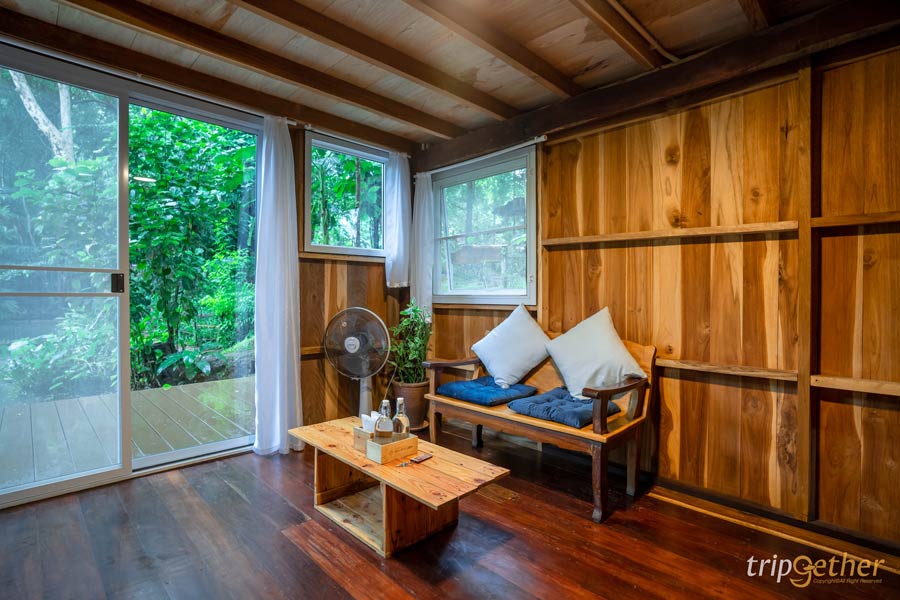มากันต่อกับที่พักถัดไป เณอโคว แอท หม่องกะลา จ.กาญจนบุรี ที่พักกลางป่าล้อมรอบด้วยต้นไม้ และลำธารไหลผ่าน และที่สำคัญใครชอบความเป็นส่วนตัว เณอโคว แอท หม่องกะลา ตอบโจทย์มาก เพราะบ้านพักแต่ละหลังตั้งอยู่ห่างกัน ทำให้มีพื้นที่ส่วนตัวในแต่ละหลังเลยทีเดียว ในส่วนของบ้านพัก ด้านหน้าจะมีระเบียงเล็กๆ นั่งชมธรรมชาติชิลล์ๆ ฟังเสียงน้ำจากลำธารค่อยๆ ไหล ช่วยกล่อมจิตใจให้เย็นสบายเหมือนสายน้ำเลย