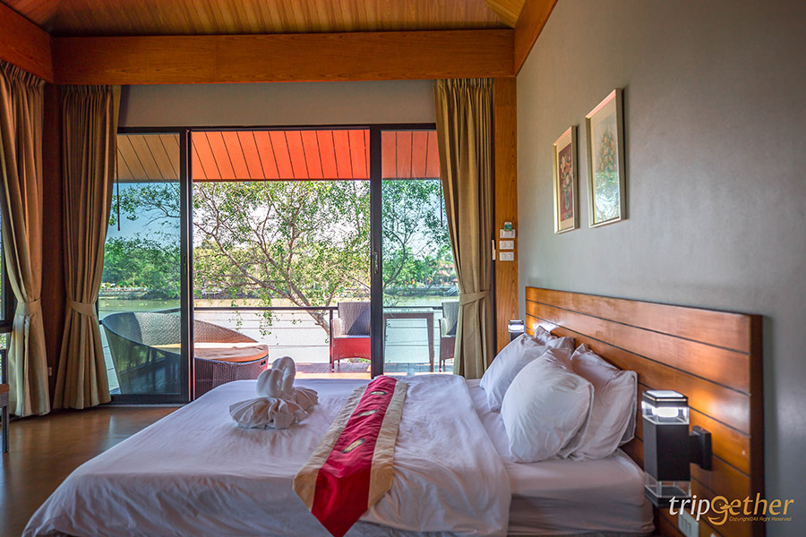 The Grace Amphawa ที่พักบรรยากาศดีด้านหน้าติดแม่น้ำแม่กลอง ด้านข้างติดริมคลอง ซึ่งล้อมรอบไปด้วยสวนผลไม้และสวนมะพร้าว ทำให้บริเวณของที่พักแห่งนี้ร่มรื่น เย็นสบาย เพราะมีลมเย็นๆ พัดผ่านอยู่ตลอด ส่วนของที่พักมีให้เลือกหลายแบบทั้งห้องวิวคลอง ห้องวิวแม่น้ำ ใครอยากเพิ่มความฟินในการมาพักผ่อนอยากแช่น้ำให้สบายตัวก็สามารถเลือกจองห้องที่มีอ่างจากุซซี่ได้ด้วย ด้านบรรยากาศภายในห้องพักก็ตกแต่งได้อย่างดี มีสิ่งอำนวยความสะดวกครบครัน ใครกำลังมองหาที่พักที่มีต้นไม้น้อยใหญ่คอยให้ร่มเงาเกือบทั่วทุกพื้นที่แถมยังมีมุมพักผ่อนมากมายให้ได้นั่งเล่นชิลล์ๆ ในบรรยากาศริมน้ำ สามารถหลีกหนีความวุ่นวายแล้วมานอนสบายๆ ที่ The Grace Amphawa ได้เลย