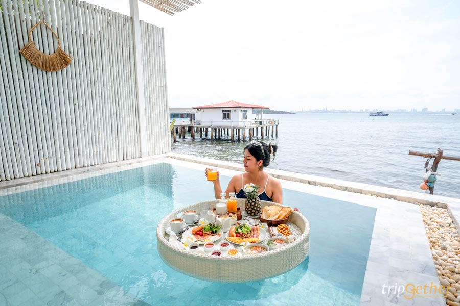 ที่พักสีขาว ริมทะเลเป็นบรรยากาศที่ดูแล้วสบายตา ชิลล์ๆ น้องเป็ดพามาพักที่บ้านรินรักษ์ เกาะล้าน ไม่ไกลจากหาดตายาย ห้องพักที่นี่คุมโทนสีขาวมินิมอล ตัดกับสีลายไม้ดูสวยงาม สะอาดตา แถมยังมีสระว่ายน้ำส่วนตัวสีขาว คุมโทนสุดๆ เล่นน้ำไป ชมวิวทะเลฟีลดีมาก แถมยังมีบริการ 𝐅𝐥𝐨𝐚𝐭𝐢𝐧𝐠 𝐁𝐫𝐞𝐚𝐤𝐟𝐚𝐬𝐭 และ 𝐀𝐟𝐭𝐞𝐫𝐧𝗼𝗼𝐧 𝐓𝐞𝐚 𝐒𝐞𝐭 เอาใจสายคอนเทนต์ โพสต์ท่าถ่ายรูปสวยปังไปเลย