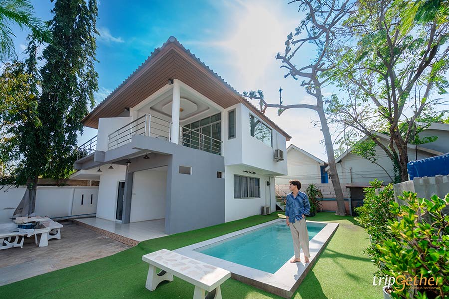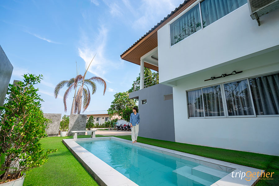 เฮเว่น พูลวิลล่า ที่พักเกาะล้านแบบหมู่คณะ บ้านพักเป็นหลังบนเกาะล้าน เน้นความเป็นส่วนตัวของกลุ่มเพื่อน หรือครอบครัวใหญ่ รองรับการเข้าพักถึง 10 คนเลยทีเดียว สำหรับที่นี่มีความพิเศษตรงที่จัดเต็มทุกความบันเทิงสำหรับสายตี้ เช่น ห้องคาราโอเกะ โต๊ะพูล อุปกรณ์ปิ้งย่าง และสระว่ายน้ำ จัดปาร์ตี้ริมสระได้ด้วย ในส่วของห้องพักมีทั้ง 2 ชั้น แต่ชั้น 2 มองเห็นวิวทะเลสวยๆ ด้วย นอกจากนี้ยังมีรถมอเตอร์ไซค์ไว้ใช้เดินทางภายในเกาะล้านสบายๆ อีกด้วย