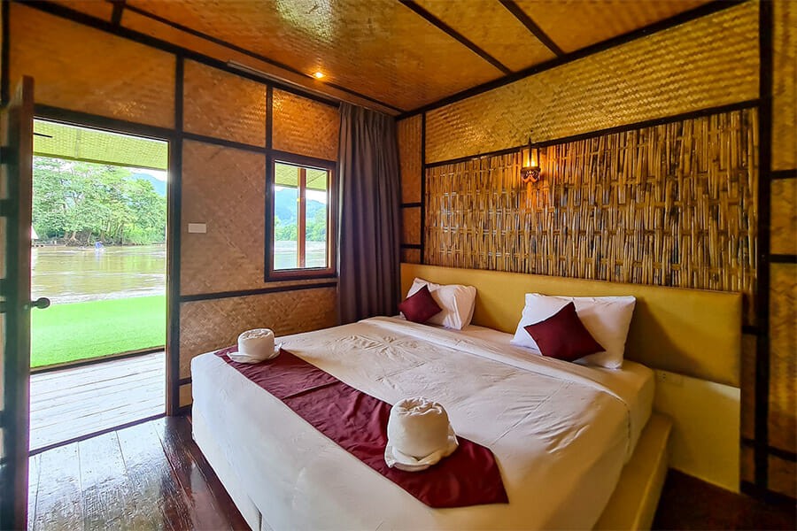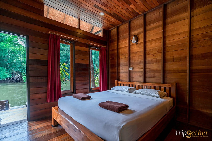 Green House River Kwai Resort ที่พักแพริมน้ำในบรรยากาศสุดธรรมชาติ ให้คุณได้นอนมองแม่น้ำแควน้อยจากบนเตียงนอน ฟังเสียงน้ำไหล ชมวิวภูเขา ต้นไม้ สายน้ำจากหน้าห้องพัก ที่พักแพริมน้ำเป็นแบบห้องแอร์ทุกห้อง และห้องน้ำในตัวพร้อมเครื่องทำน้ำอุ่น ที่พักมีเปล บีนแบคให้ได้นั่งและนอนริมน้ำเพื่อความชิลล์อีกด้วย ที่สำคัญ Green House River Kwai Resort สามารถนำสัตว์เลี้ยงเข้าพักได้ ใครเป็นสายพาสัตว์เลี้ยงท่องเที่ยวต้องที่นี่เลย