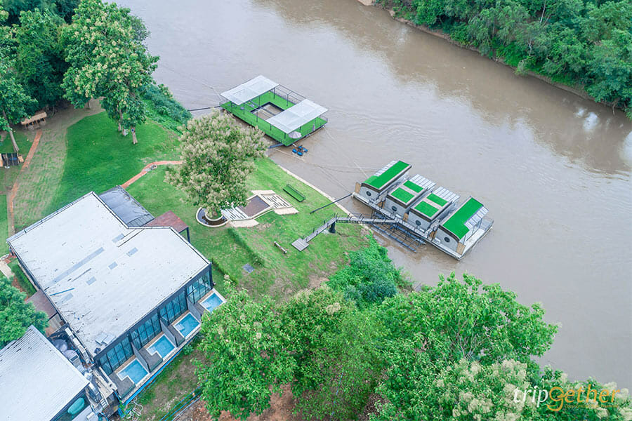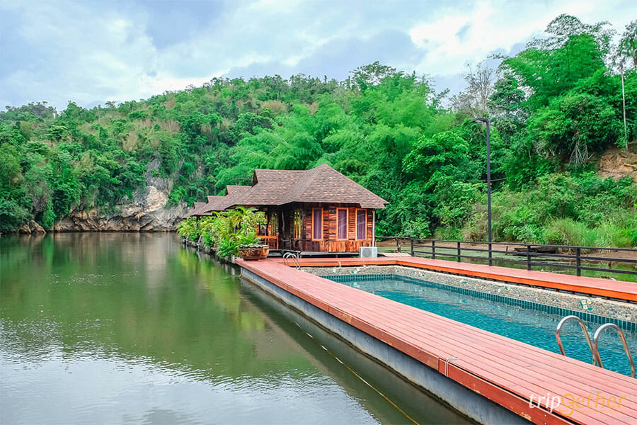 Saiyok Floatel ที่พักท่ามกลางหุบเขาบนแม่น้ำแควน้อย ใกล้ชิดรรมชาติและต้นไม้ที่เขียวขจี บ้านไม้สไตล์ไทยผสมความร่วมสมัยได้อย่างดี การตกแต่งที่เน้นการใช้เฟอร์นิเจอร์ไม้ให้เข้ากับบรรยากาศที่ใกล้ชิดธรรมชาติ ใครชอบกิจกรรมทางน้ำที่นี่มีทั้งกิจกรรมลากแพเปียกเล่นน้ำเพิ่มความสนุกสนามให้กับการมาพักผ่อน หรือจะกิจกรรมชิลล์ๆ พายคายัคชมธรรมชาติ อย่างเพลินๆ ใครไม่อยากเล่นน้ำเย็นๆ ในแม่น้ำที่นี่มีสระว่ายน้ำติดแม่น้ำให้ได้ลงเล่นกันด้วย ใครกำลังหาที่พักแสนสงบติดริมแม่น้ำท่ามกลางธรรมชาติ Saiyok Floatel เหมาะสุดๆ