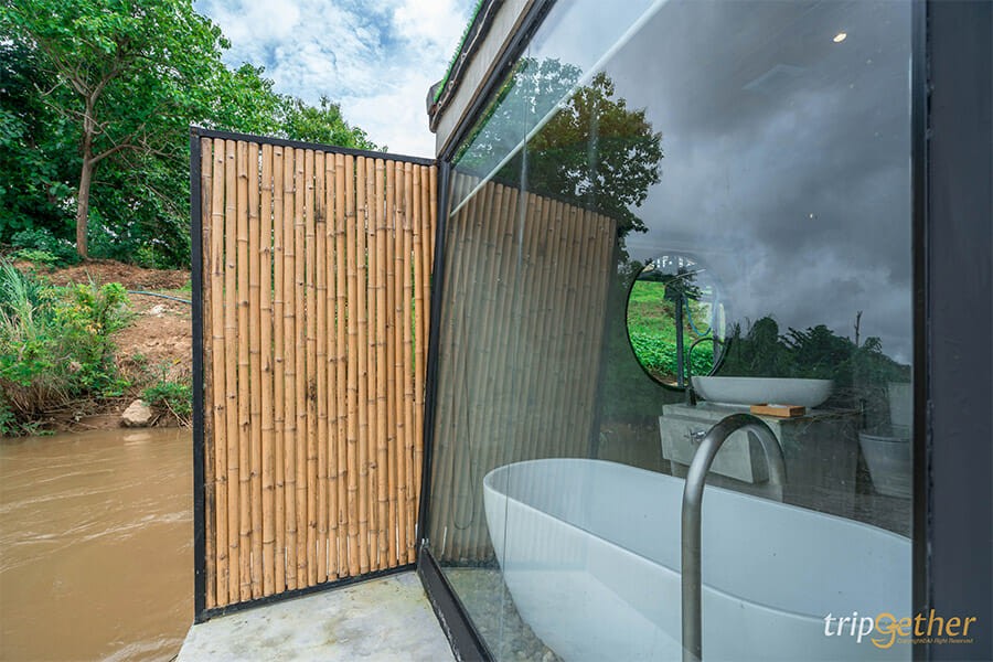 The For Rest Resort แพบ้านพักริมแม่น้ำแคว วิวธรรมชาติ นอนฟังเสียงน้ำไหล สัมผัสอากาศเย็นสดชื่นในช่วงเช้าและช่วงค่ำ ที่พักสุดไพเวทเพียงเปิดประตูก็จะพบสายน้ำไหลเย็น สามารถนั่งชิลล์เอาขาจุ่มน้ำได้อย่างสบายๆ รับความสดชื่น และยังมีเปลให้นอนชิลล์ชมวิวธรรมชาติ ใครอยากเพิ่มความพิเศษในทริปนี้ขึ้นไปอีกก็สามารถจองห้องพักที่มาพร้อมกับอ่างออนเซนให้คุณได้แช่น้ำมองวิวอย่างฟินๆ นอกจากนี้ยังมีสระว่ายน้ำให้ว่ายน้ำเย็นๆ ท่ามกลางธรรมชาติ หรือจะไปล่องแพเปียกชมวิวธรรมชาติข้างทาง ลอยคอว่ายน้ำในแม่น้ำเย็นๆ เลือกกิจกรรมได้ตามใจคุณเลย