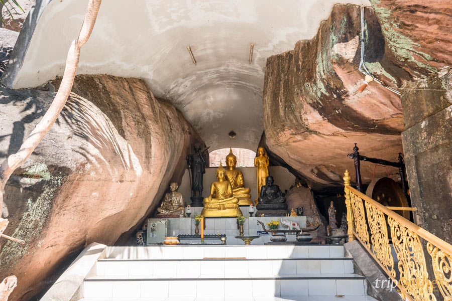 วัดถ้ำกลองเพล วัดป่าที่มีชื่อเสียงของจังหวัดหนองบัวลำภู ในอดีตวัดแห่งนี้เคยเป็นสถานที่วิปัสสนากรรมฐานของพระอาจารย์หลวงปู่ขาว อนาลโย หลังจากหลวงปู่มรณะภาพได้มีการสร้างพิพิธภัณฑ์อัฐบริขารของหลวงปู่ขาวซึ่งอยู่ห่างจากวัด 2 กิโลเมตร วัดกลองเพลมีพื้นที่กว้างขวางมากแต่บรรยากาศเงียบสงบ เต็มไปด้วยไปด้วยแมกไม้ ป่าเขียว และสวนหินธรรมชาติ ตามซอกหินมีพระพุทธรูปขนาดใหญ่ประดิษฐานอยู่หลายองค์