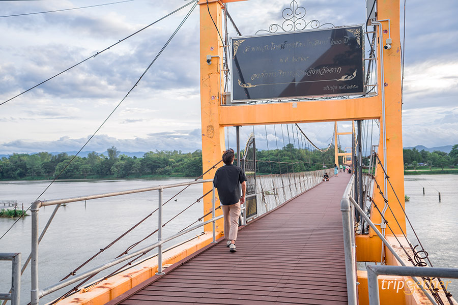 สะพานสมโภชกรุงรัตนโกสินทร์ 200 ปี สร้าวเพื่อสมโภชน์กรุงรัตนโกสินทร์ 200 ปี ทำด้วยไม้โยง ยึดด้วยสลิงขนาดใหญ่ สมัยก่อนรถจักรยาน และจักรยานยนต์สามารถสัญจรได้ แต่สมัยนี้เฉพสะคนสามารถสัญจร ยืนชมวิวได้เท่านั้น โดยจุดนี้คนนิยมมา ชมวิวพระอาทิตย์ตกยามเย็น แสงสุดท้ายของวันกระทบกับแม่น้ำปิงเป็นภาพที่สวยงามมาก อย่าลืมเก็บภาพสวยๆ ก่อนกลับไปด้วยนะ