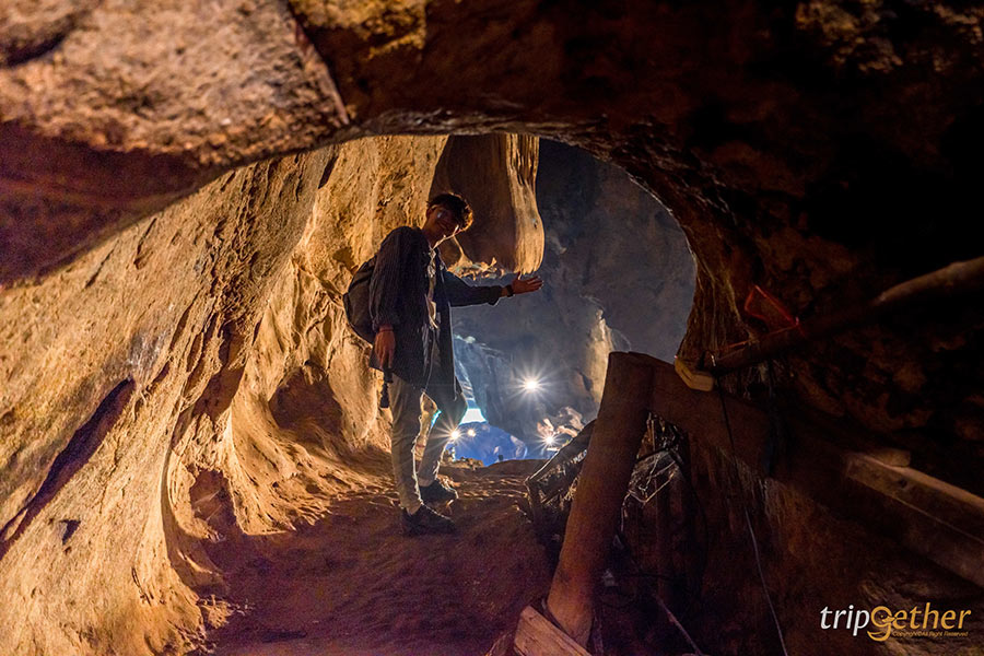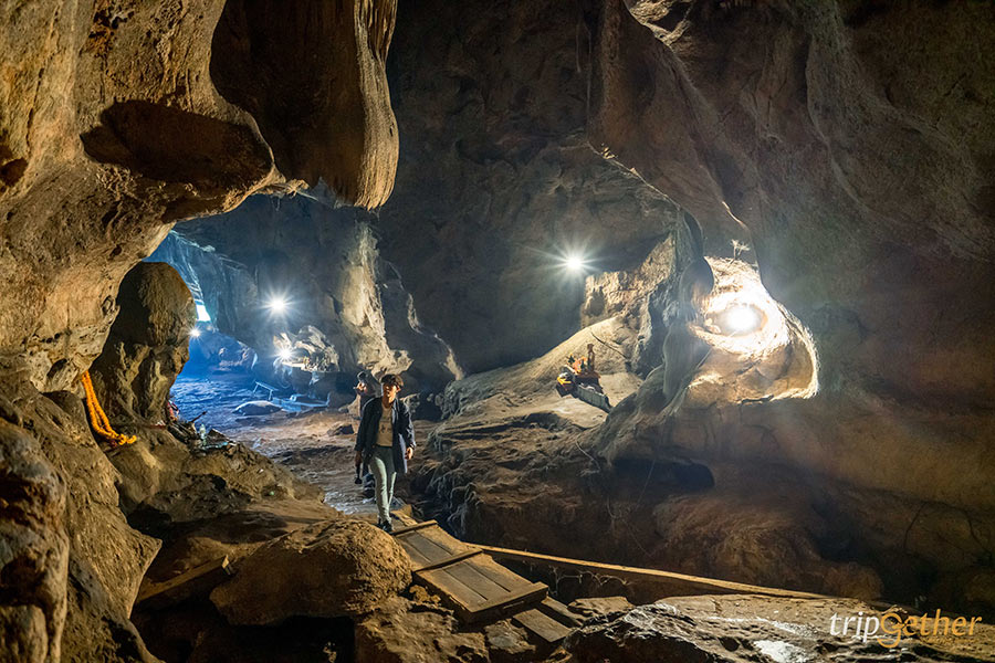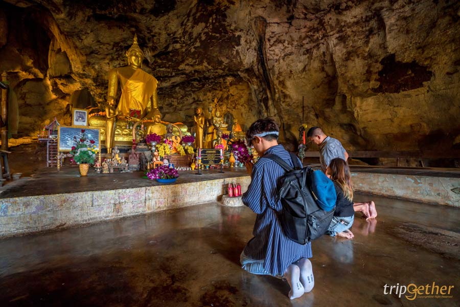 ถ้ำกระแซ แลนด์มาร์กบนเส้นทางรถไฟสายมรณะ เป็นช่วงโค้งน้ำที่หลายคนนิยมลงมาเดินเลียบทางรถไฟ เป็นจุดชมวิวแม่น้ำแควที่สวยที่สุด แต่ควรจะเดินด้วยความระมัดระวังหน่อยนะเพราะว่าที่นี่อยู่ค่อนข้างสูง เมื่อมาที่นี่แล้ว เราจะลงจากรถไฟเพื่อเข้าไปไหว้พระภายในถ้ำกระแซเพื่อความเป็นสิริมงคลกันต่อก่อนเดินทางกลับ