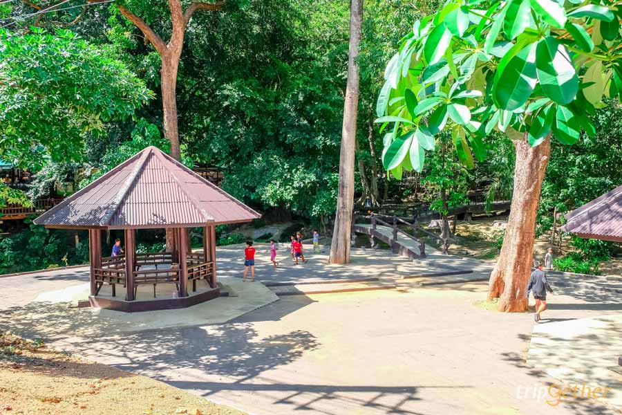 น้ำตกไทรโยคน้อย หรือน้ำตกเขาพัง จุดหมายปลายทางของเราในวันนี้ น้ำตกไทรโยคน้อย เป็นน้ำตกหินปูนเกิดจากน้ำผุดจากหน้าผาหินปูน น้ำจึงมีความใส เย็น ลงได้เล่นได้ ภายในน้ำตกจะมีหัวรถจักรไอน้ำ สมัยสงครามโลกครั้งที่ 2 เป็นอนุสรณ์ของเส้นทางรถไฟสายมรณะ