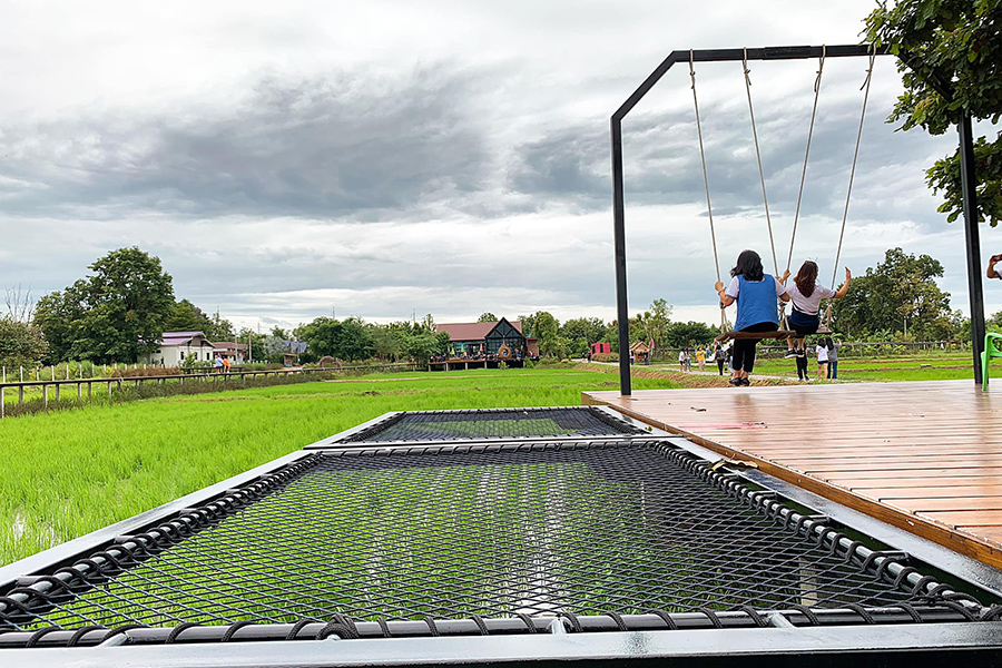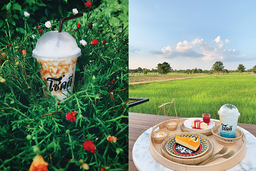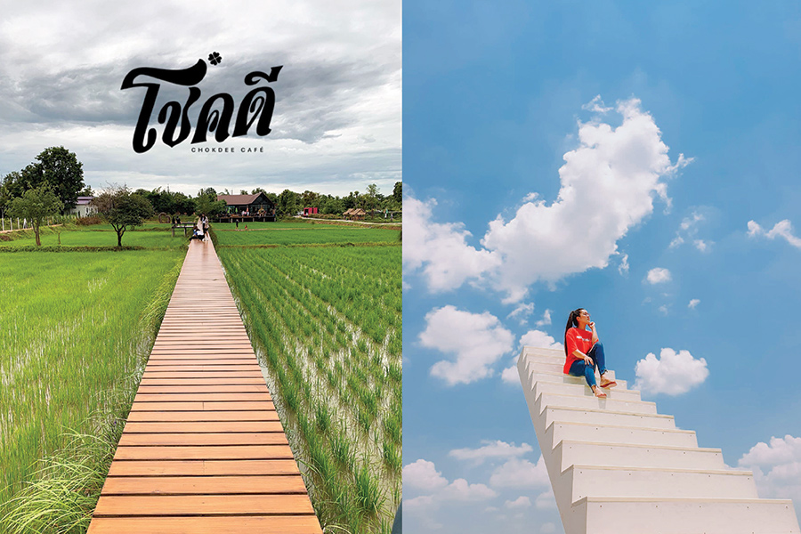 เริ่มต้นที่ โชคดี คาเฟ่ (Chokdee Cafe) คาเฟ่แดนอีสานจังหวัดขอนแก่นที่มาพร้อมพื้นที่สีเขียวของท้องทุ่งนาบนพื้นที่กว่า 30 ไร่ ตัวร้านมาในสไตล์ลอฟท์ร่วมสมัย มีโซนให้เลือกนั่งทั้งอินดอร์ในห้องแอร์ฉ่ำๆ และโซนเอ้าท์ดอร์ให้คุณได้นั่งจิบเครื่องดื่มฟินๆ ไปกับบรรยากาศหลักล้าน อีกทั้งยังมีมุมถ่ายรูปให้เพียบทั้งสะพานกลางทุ่งนา รังนกบาหลี และมุมไฮไลท์เด็ดที่สาวๆ พลาดไม่ได้กับบันไดสวรรค์ บอกเลยว่าต้องเตรียมชุดมาให้พร้อม สำหรับเมนูอาหารและเครื่องดื่มมีให้ลิ้มลองท้ัง โชคดีคอฟฟี่ เมนูกาแฟที่ผสมผสานส่วนผสมของสตรอว์เบอร์รี่และโซดาเข้ากับช็อตกาแฟเอสเพรสโซ่ได้อย่างลงตัวให้รสชาติที่แปลกใหม่พร้อมทั้งความสดชื่นตลอดวัน สำหรับคนไม่ชอบดื่มกาแฟก็สามารถสั่ง โชคดีfizzy เมนูโซดาที่มีเลเยอร์ของส้มกับสตรอว์เบอร์รี่ ตามมาด้วยเซ็ตชาดอกไม้ ที่ให้คุณประโยชน์ดีๆ กับร่างกายเพียบ ใครที่ได้มาเยือน โชคดี คาเฟ่ ขอนแก่น แห่งนี้รับรองว่าได้รูปสวยกลับไปอย่างแน่นอน