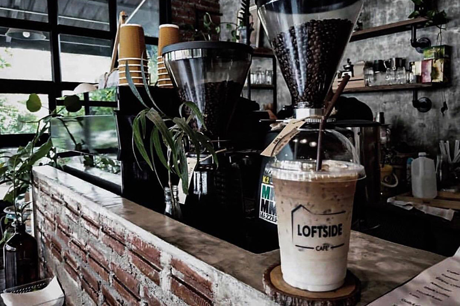 ลอฟท์ ไซด์ คาเฟ่ (Loft Side Cafe) คาเฟ่เล็กๆ รายล้อมไปด้วยต้นไม้น้อยใหญ่ในบรรยากาศสบายให้ได้แวะมาจิบเครื่องดื่มพร้อมสูดโอโซนดีๆ ในวันหยุดพักผ่อน ซึ่งร้านออกแบบมาในสไตล์ลอฟท์เท่ๆ เคาน์เตอร์กาแฟตกแต่งด้วยอิฐเน้นโชว์พื้นผิวเข้ากันได้ดีกับกำแพงปูนเปลือยขัดเงา พร้อมทั้งยังเติมแต่งความสดชื่นให้ภายในร้านด้วยต้นไม้น่ารักๆ นอกจากนี้ยังมีเบเกอรี่น่าลิ้มลองอย่าง เค้กมันม่วง เค้กบัตเตอร์ราดครีมสด Danish Strawberry & Blueberry คาราเมลบานาน่า และอีกหลากหลายเมนูที่สลับซับเปลี่ยนกันมาเติมความอร่อยให้ผู้มาเยือน