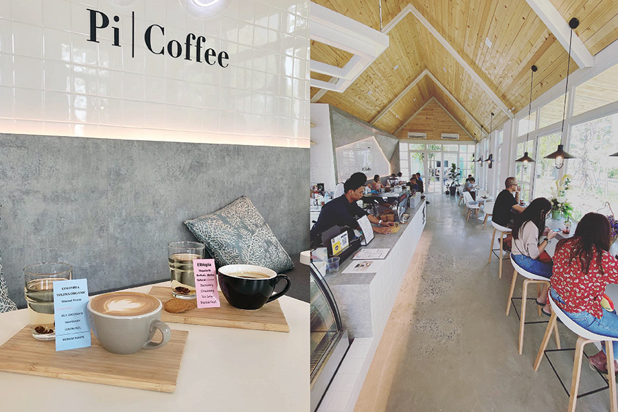 พาย คอฟฟี่ (Pi Coffee) คาเฟ่เปิดใหม่มาในสไตล์น่ารัก ภายในร้านกว้างขวางตกแต่งสไตล์โมเดิร์นโทนสีขาวสบายตา เติมแต่งสีสันด้วยหมอนลายสวย ต้นไม้ และดอกไม้เติมความสดชื่นภายในร้านได้เป็นอย่างดี นอกจากนี้ยังมีห้องประชุมเล็กรองรับคนได้ 10-15 คน พร้อมบริการให้เช่าอีกด้วย เมนูเครื่องดื่มน่าลิ้มลอง Black pina citrus และ Green pina citrus สองเมนูใหม่ที่ทางร้านอยากนำเสนอความสดชื่นให้กับผู้มาเยือน ต่อด้วย D Dragon เครื่องดื่มเพื่อสุขภาพที่ให้รสชาติเปรี้ยวอมหวานของแก้วมังกรสีม่วงผสมผสานกับมะม่วงหาวมะนาวโห่ได้อย่างลงตัว และปิดท้ายด้วย Keep Peace with Peace Tea ชาพีชหอมหวานรสชาติดีต่อใจ สำหรับใครที่กำลังมองหาคาเฟ่ชิคๆ บรรยากาศดีก็แวะมาชิลล์ได้ที่ Pi Coffee ขอนแก่น