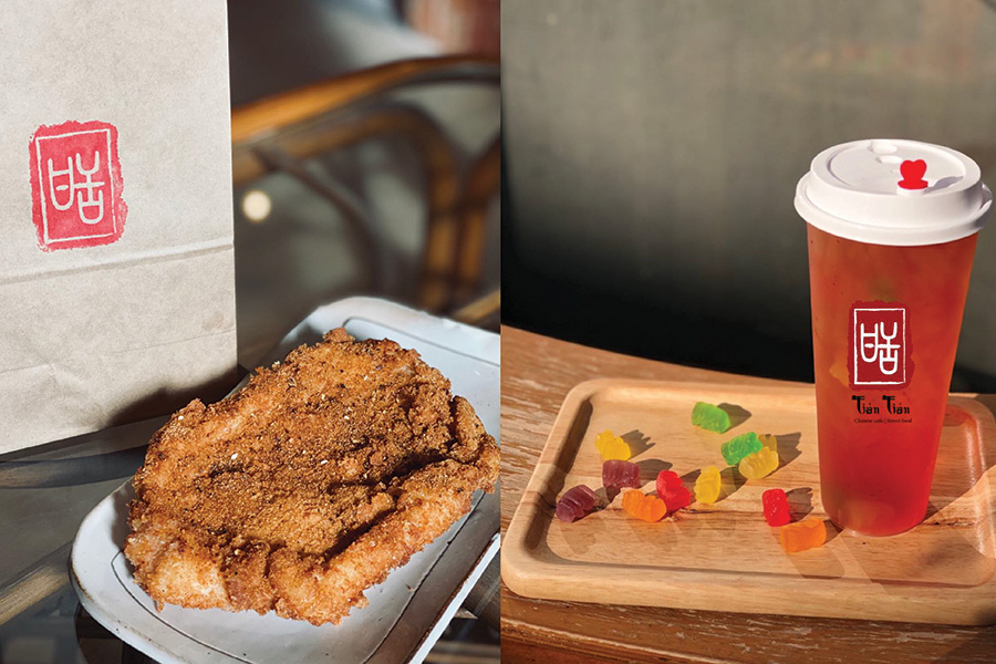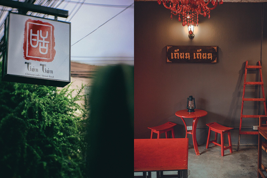 เถียนเถียน ไชนีส คาเฟ่ แอนด์ สตรีทฟู้ด (TianTian Chinese Cafe & Street Food) คาเฟ่ที่มาพร้อมการตกแต่งร้านให้กลิ่นอายสวยเท่สไตล์จีนและอาหารจีนที่ใช้เครื่องเทศนำเข้าจากประเทศจีนโดยตรงทุกเมนู มีหลากเมนูที่อยากแนะนำให้ลองสั่งอย่าง หม่าล่าทอด เป็นเมนูที่นำเอาเนื้อสัตว์ ลูกชิ้น และผักต่างๆ มาเสียบไม้แล้วนำลงไปทอด จากนั้นจึงทำซอสและเครื่องเทศมาคลุกเคล้ากันจนได้รสชาติที่มีเอกลักษณ์เฉพาะตัวไม่เหมือนใคร ตามมาด้วย หมั่นโถวทอด และหนังไก่ทอดหม่าล่า พร้อมทั้งจิบเครื่องดื่มอย่าง ชากุหลาบ ชาไทย ชาเขียวพรีเมียม ชาบับเบิ้ลกัม เลม่อนยาคูลท์ กล้วยหอมช็อคโก และชาเสาวรส เป็นอีกร้านที่เหมาะหนีมานั่งพักผ่อนในบรรยากาศสบายๆ คลายความเหนื่อยพร้อมทั้งได้รูปสวยอีกด้วย