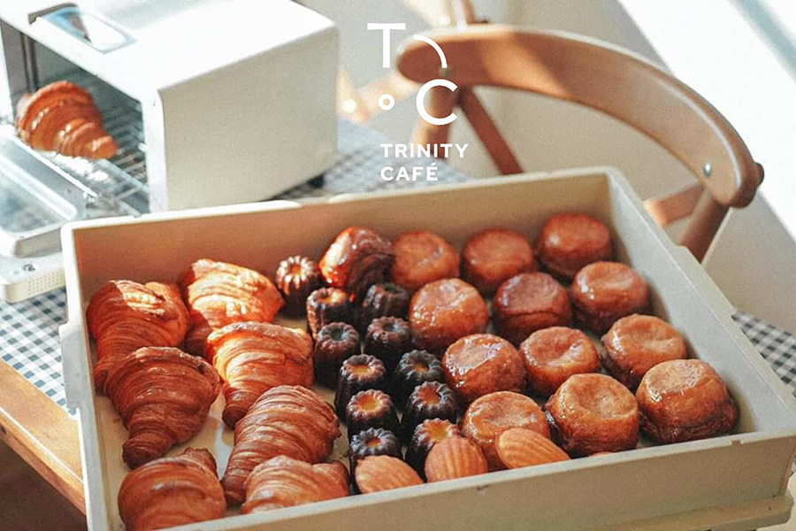 ทรินิตี้ คาเฟ่ (Trinity Cafe) คาเฟ่สไตล์มินิมอลตั้งอยู่ใจกลางเมืองขอนแก่น ที่โดดเด่นด้วยเมนูเบเกอรี่โฮมเมดสุดละมุนอย่าง ครัวซองต์สูตรเด็ด Shokupan, Canele, Pastries Chili sausage Croissant, Ham&cheese croissant, Almond croissants, Original croissant และ Chocolate Truffle Croissant แต่ละเมนูคัดสรรวัตถุดิบมาให้อย่างพิถีพิถันอบสดใหม่ทุกวัน ในส่วนของเมนูกาแฟก็มีหลากหลายเป็นแนวสโลว์บาร์ กาแฟดริปหอมกรุ่นได้รสชาติกาแฟกลมกล่อมอีกด้วย ภายในร้านมาในโทนสีเทา-ขาวสุดปัง ไม่ว่าจะนั่งมุมไหนก็ได้รูปชิคแน่นอน