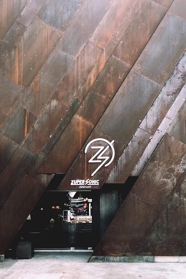 Zuper Sonic ร้านสวยใจกลางเมืองระยองที่ตกแต่งด้วยงานเหล็กซึ่งเป็นความชอบส่วนตัวของเจ้าของร้านที่หลงใหลในสัจจะวัสดุอย่างเหล็ก ไม้ อิฐ และปูนเปลือย บริเวณหน้าร้านจึงใช้เหล็กเปลือยนำมาต่อกันเป็นแผงใหญ่ เพื่อให้ส่งผลต่อความรู้สึกน่าค้นหาและน่าสนใจ ซึ่งคอนเซ็ปต์ของร้านต้องการให้เป็นคลับกาแฟที่สามารถเชื่อมโยงระหว่างร้านกับลูกค้าได้เป็นอย่างดี ด้วยการเข้ามานั่งจิบกาแฟและพูดคุยกัน ตัวร้านจึงมีบาร์เป็นทรงแคปซูลตัวยูตั้งอยู่บริเวณกลางร้านเพื่อให้เกิดความใกล้ชิดกับลูกค้าได้เป็นอย่างดี นอกจากนี้ก็มีโซนสำหรับผู้คนที่ชอบความเป็นส่วนตัวที่ตกแต่งด้วยเฟอร์นิเจอร์ไม้ออกแบบเองและทำเองทั้งหมดตามแนวคิดของร้าน ในส่วนชั้น 2 ของร้านนั้นเป็นร้านเสื้อผ้าสไตล์วินเทจเข้ากับตัวร้านได้เป็นอย่างดีเลยทีเดียว หากใครชอบบรรยากาศร้านแนวนี้ก็ลองแวะมาชิลล์กันได้นะ