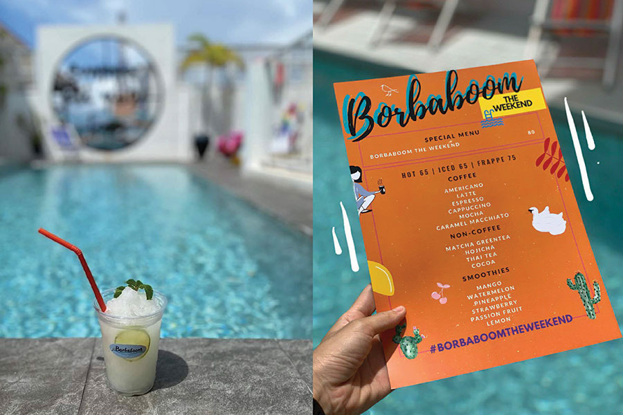 Borbaboom The Weekend คาเฟ่ชิคๆ ที่เปิดให้บริการในช่วงวันศุกร์ เสาร์ และอาทิตย์ พร้อมเสิร์ฟสีสันให้ผู้มาเยือนด้วย Rooftop สระว่ายน้ำสุดเท่ ไม่ว่าจะถ่ายรูปมุมไหนก็ฟินให้บรรยากาศเหมือนมานั่งชิลล์อยู่ในคาเฟ่ริมหาดด้วยของตกแต่งสไตล์บีชคาเฟ่ ภายในเพียบพร้อมไปด้วยพื้นที่พักผ่อนและมุมถ่ายรูปสุดชิลล์ ใครอยากมาเช็คอินบอกเลยว่าต้องเตรียมชุดให้พร้อม!!