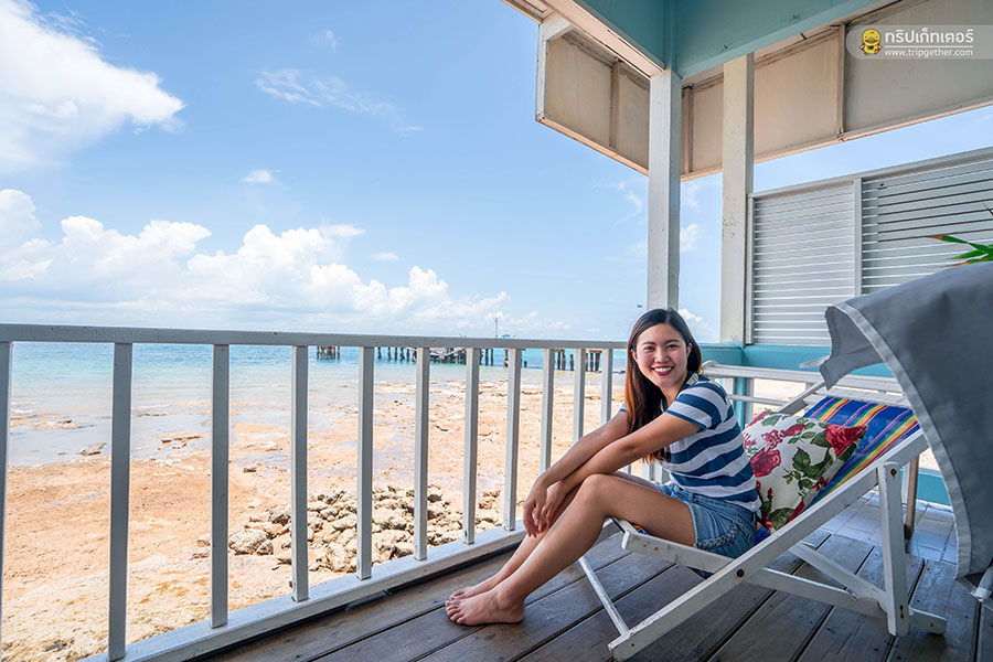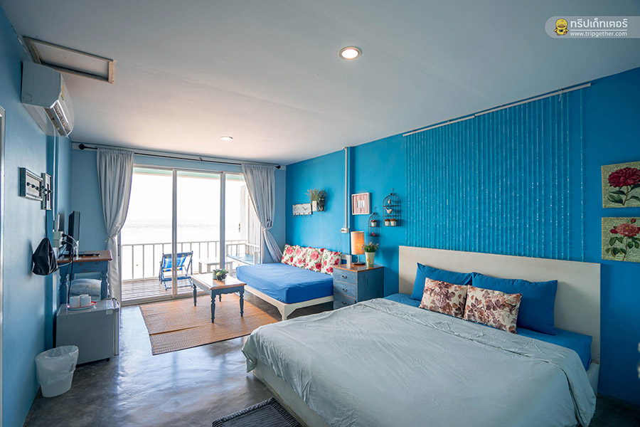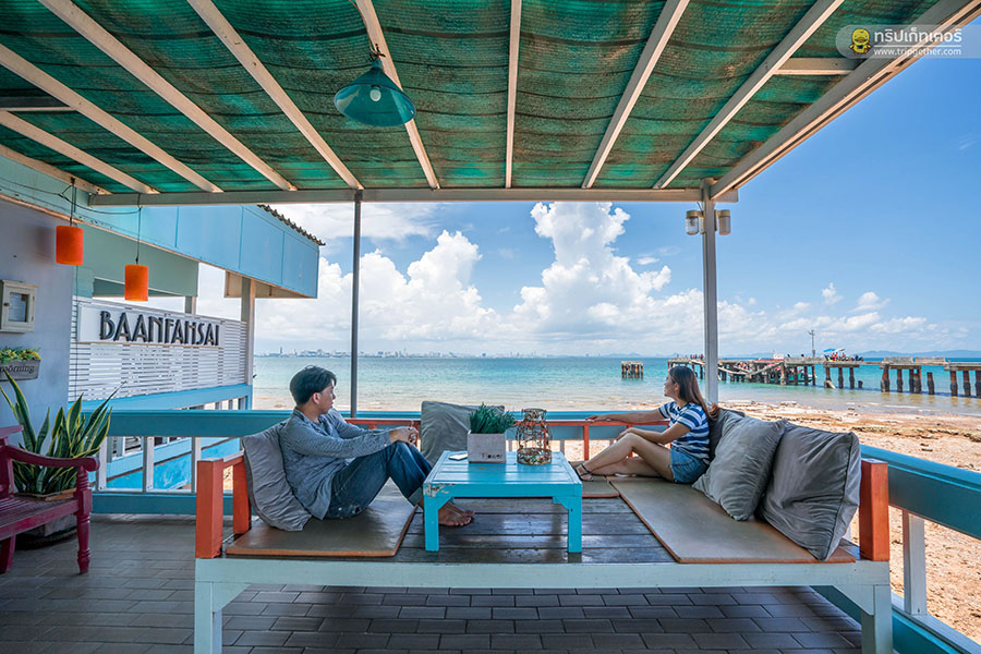 บ้านฟ้าใสรีสอร์ท เกาะล้าน ที่พักที่ยื่นออกไปกลางทะเล สามารถเดินลงไปเล่นน้ำทะเลได้แบบชิลล์ๆ เลย อีกทั้งยังอยู่ติดกับท่าหน้าบ้านเดินทางได้สะดวกสบาย สำหรับห้องพักของบ้านฟ้าใส ภายในตกแต่งด้วยโทนสีฟ้าสมชื่อ และยังมีห้องพักสีสันสดใสอื่นๆ แบบคัลเลอร์ฟูล ตกแต่งเรียบง่าย ออกแนววินเทจนิดๆ มีระเบียงส่วนตัวที่มาพร้อมกับมุมที่นั่งพักผ่อนมากมาย ตื่นนอนตอนเช้าๆ ออกมานั่งดูพระอาทิตย์ขึ้น รับรองว่าฟินสุดๆ