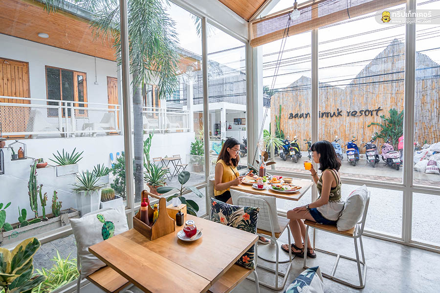 รินรักษ์ คาเฟ่ คาเฟ่เรือนกระจกสุดเรียบง่ายสไตล์มินิมอลในโทนสีขาว โดดเด่นด้วยมุมถ่ายรูปหน้าร้านที่ชิคสุด รายล้อมไปด้วยกระบองเพชรหลากหลายชนิด ภายในร้านเน้นประดับประดาด้วยแคคตัสสุดน่ารัก ในส่วนของเมนูของหวานมีหลากหลาย อย่าง วาฟเฟิล ที่เสิร์ฟมาพร้อมกับไอศกรีมวานิลลา วิปปิ้งครีม และผลไม้ตามฤดูกาล ต่อด้วย บราวนี่ เนื้อหนึบหนับรสชาติเข้มข้น หอมช็อกโกแลตไม่หวานมาก อร่อยถูกใจสุดๆ สำหรับสาวๆ คนไหนที่อยากพักผ่อน ที่นี่ก็มีที่พักน่ารักๆ ให้บริการด้วยเช่นกัน เป็นอีกหนึ่งคาเฟ่ที่เมื่อมาเยือนเกาะล้านแล้วต้องแวะมาเก็บภาพรัวๆ