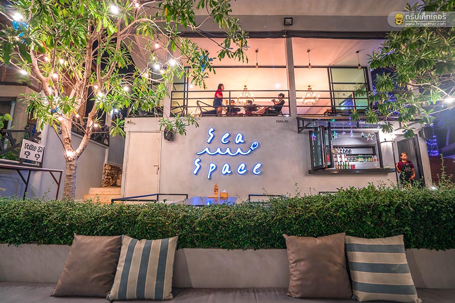 Sea Space คาเฟ่น่ารักตกแต่งสวยสไตล์มินิมอล มาพร้อมมุมน่านั่งทั้งในตัวร้านและโซนริมทะเล ประดับตกแต่งด้วยของน่ารักเข้ากันได้ดีกับท้องทะเลสีคราม มีระเบียงให้ออกมานั่งมองวิวสวยของทะเลได้แบบเต็มอิ่ม ส่วนใครที่อยากไปนั่งสัมผัสบรรยากาศริมทะเลก็แนะนำให้ลงไปช่วงเย็นๆ จะได้บรรยากาศดีสุด ในส่วนของเมนูอาหารพร้อมเสิร์ฟทั้งคาวหวาน มาในสไตล์ฟิวชั่น อย่าง ข้าวอบสับปะรด, กุ้งอบวุ้นเส้น, ต้นยำทะเล, โฮมเมดเค้ก, ฮันนี่โทสต์ และ บิงซู ไม่ว่าจะมานั่งชิลล์ๆ หรือชวนแฟนมาดินเนอร์ก็ฟินแน่นอน