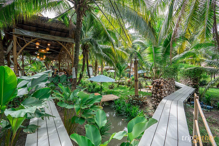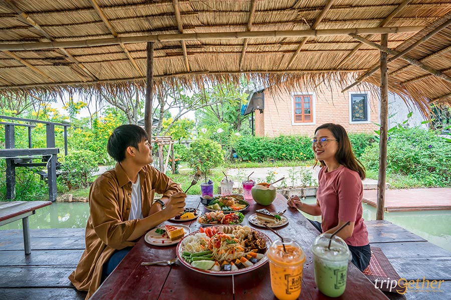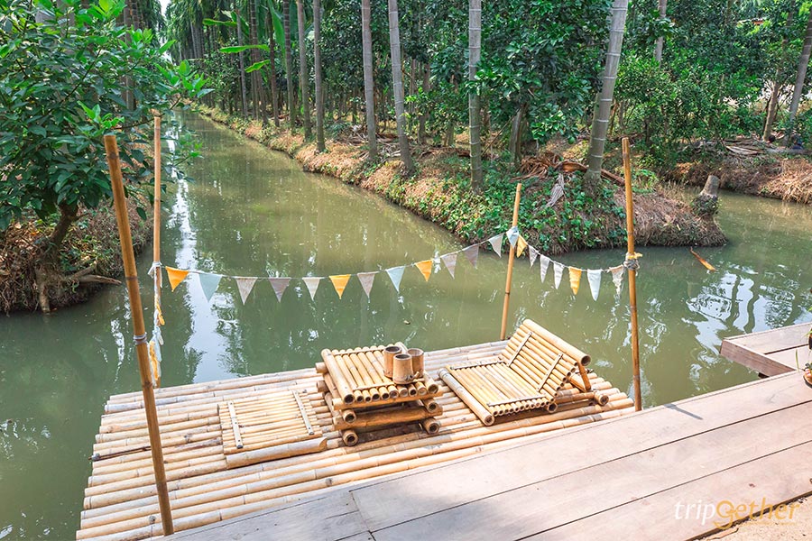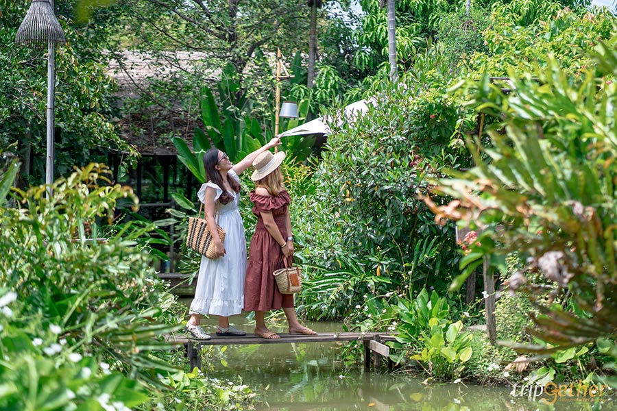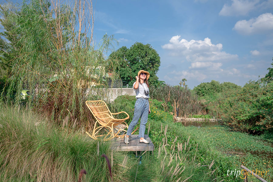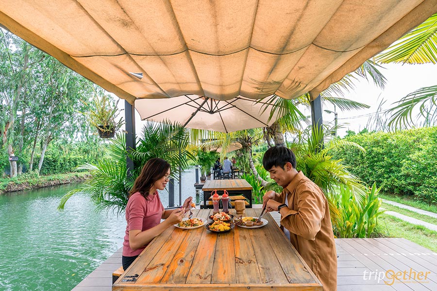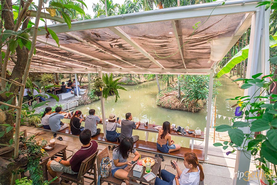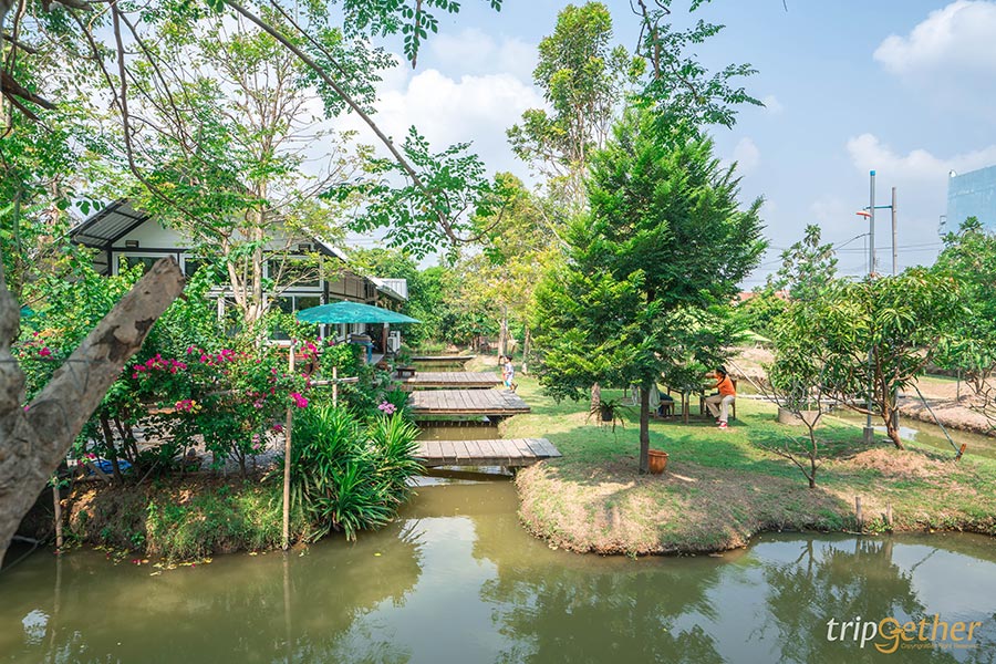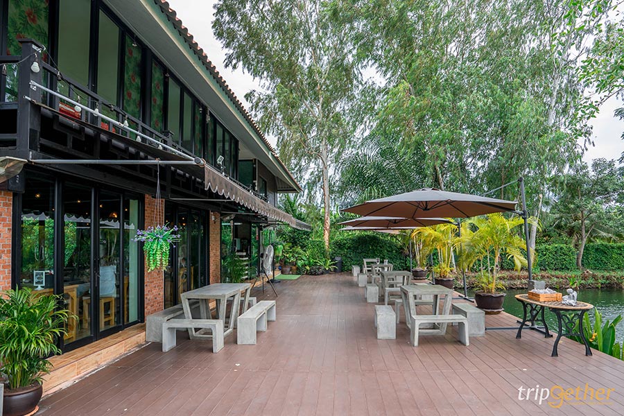 บ้าน 1000 ไม้ คาเฟ่ แอนด์ ฟาร์ม คาเฟ่ริมคลองบางเตยบนพื้นที่กว้างขวางกว่า 3 ไร่ ในบรรยากาศสุดร่มรื่น ที่มีต้นจามจุรียักษ์ เป็นจุดเด่นคอยต้อนรับผู้มาเยือน มีโซนให้เลือกนั่งกันมากมายในแบบ outdoor ทั้งใต้ร่มไม้ ใกล้ริมน้ำ ขอบอกว่าคาเฟ่นี้บรรยากาศชิลล์มากๆ สามารถเดินเล่นถ่ายรูปได้หลายมุม ไม่เพียงแต่เป็นคาเฟ่ ที่นี่ยังเหมาะกับครอบครัวที่พาลูกๆ มาทำกิจกรรมในวันหยุดได้ด้วย เพราะมีโซนกิจกรรมเชิงเกษตรสำหรับเด็กทั้ง ดำนา เก็บไข่ไก่ ทำสวน ปลูกต้นไม้ เวิร์คชอปไข่เค็ม เวิร์คชอประบายสี ทำเสื้อมัดย้อม บ่อทรายสำหรับเด็ก พายเรือคายัค และยังมีฟาร์มสัตว์ทั้งเป็ด ไก่ ให้เด็กๆ ได้ดูกันด้วย บ้าน 1000 ไม้ คาเฟ่ แอนด์ ฟาร์ม เหมาะกับคุณพ่อและแม่ที่มานั่งกินอาหารกันอย่างเพลินๆ ดูลูกๆ ทำกิจกรรมกันอย่างสนุกสนานตามวัย