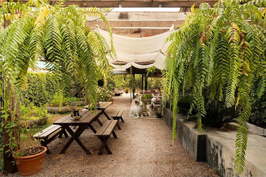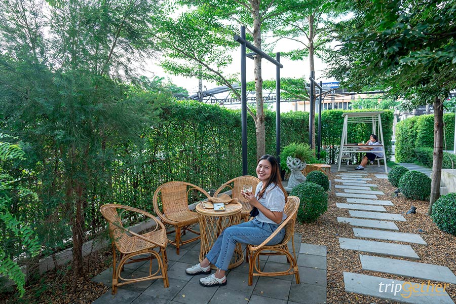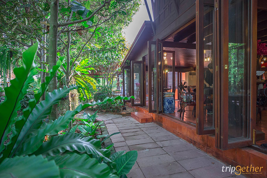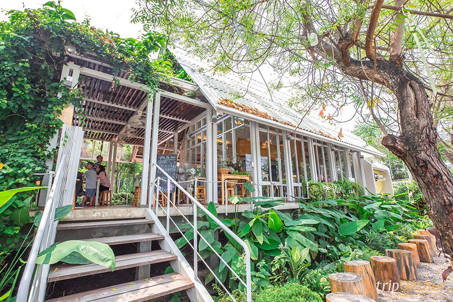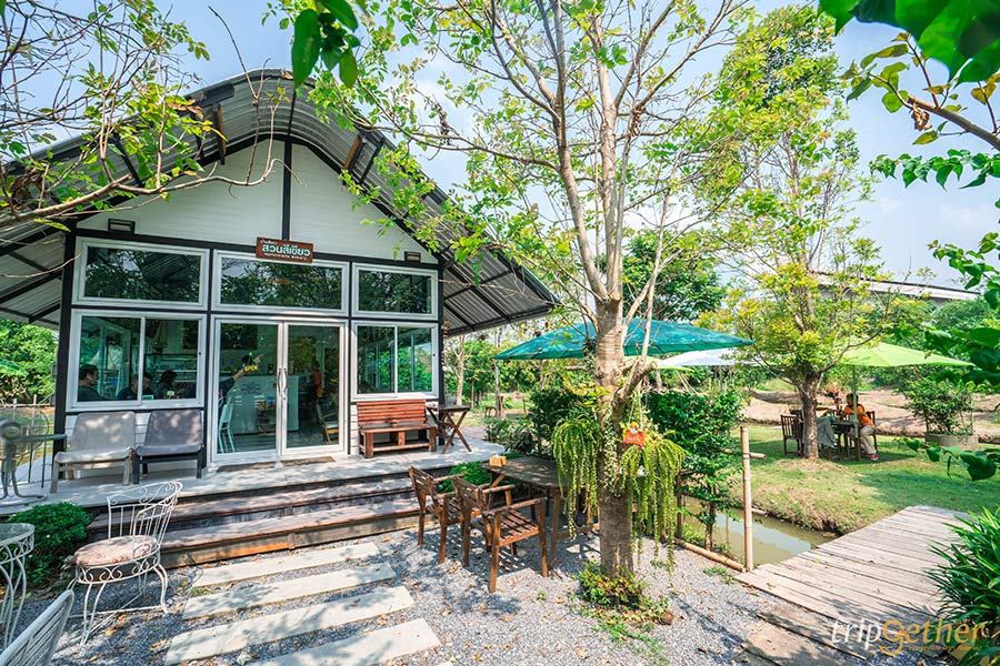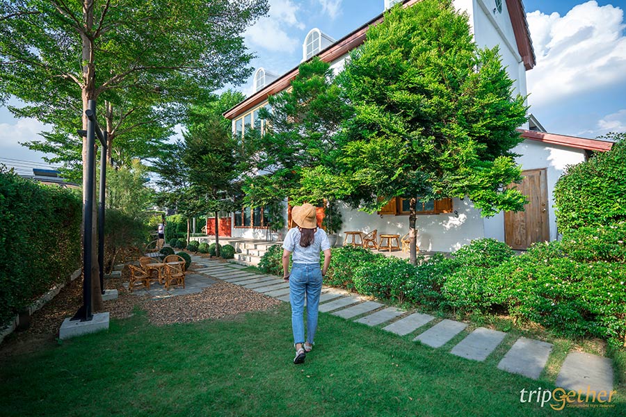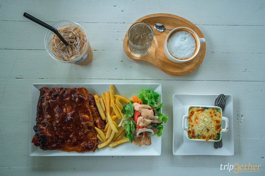 บ้านสีขาว สวนสีเขียว ร้านน่ารักสไตล์บ้านสวนแสนอบอุ่นที่ถูกล้อมไปด้วยต้นไม้น้อยใหญ่ให้ความรู้สึกสดชื่นและสบายตา ที่นั่งมีทั้งโซน Indoor ให้นั่งตากแอร์เย็นๆ ใครมาในช่วงที่อากาศไม่ร้อนมากหรือกำลังเย็นๆ แนะนำให้นั่งโซน Outdoor รอบๆ ตัวร้านเพราะให้ความรู้สึกชิลล์มากๆ เป็นการนั่งกินข้าวในบรรยากาศสวนท่ามกลางธรรมชาตินั่นเอง เมนูแนะนำที่อยากให้ลองก็คือซี่โครงหมูบาร์บีคิว ซึ่งทำต่อวันได้เพียงไม่กี่จานเพราะเป็นอาหารโฮมเมด ทานคู่กับผักโขมอบชีสอร่อยสุดๆ ที่สำคัญอย่าลืมสั่งเบเกอรี่มาตบท้ายรับรองฟินสุดๆ
