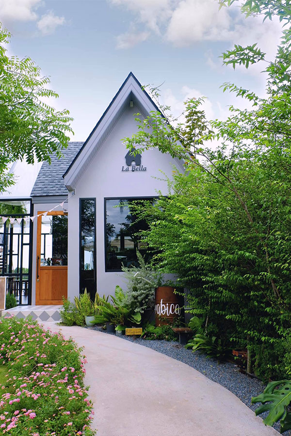 La Bella Cafe คาเฟ่สวยสไตล์ยุโรป ตั้งอยู่ริมแม่น้ำท่าจีนใกล้กับวัดท่ากระบือ ตัวร้านเป็น Glasshouse ที่สามารถมองเห็นวิวด้านนอกแบบ 180 องศา ซึ่งนอกจากตัวร้านที่ดูสวยงามตามสไตล์ยุโรปแล้ว สวนบริเวณร้านยังถูกตกแต่งไว้อย่างสวยงามไม่แพ้กัน ที่นั่งมีทั้งแบบโซน Indoor และโซน Outdoor ในเลือกนั่งหลายมุม ที่สำคัญมีมุมให้ถ่ายรูปสวยๆ ทั่วบริเวณร้าน สำหรับเครื่องดื่ม ที่แนะนำก็คือ Honey Lemon Cold Brew, Espresso Le Blue, Latte On The Rocks, Pure Yuzu และ Dalgona milk/coffee ในส่วนของเค้กทาง La Bella Cafe จะมีให้เลือก 7 – 8 ชนิด สลับกันไป ใครกำลังมองหาร้านสวยๆ กินเค้ก จิบกาแฟ แถมได้รูปสวยๆ พลาดไม่ได้เด็ดขาด