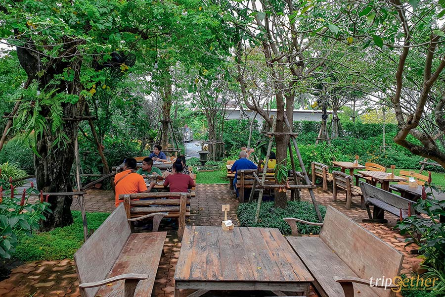 Jardin de Chaisri คาเฟ่ในบริเวณบ้านทรงไทยใต้ถุนสูง เน้นการตกแต่งแบบไทยๆ แต่มีชื่อมาจากภาษาฝรั่งเศสที่อ่านว่า ฌาร์แด็ง เดอ ไชยศรี แปลว่า สวนแห่งนครชัยศรี พื้นที่ร้านรายล้อมไปด้วยต้นไม้น้อยใหญ่นานาพันธุ์ โซนที่นั่งมีทั้ง Indoor ใต้ถุนบ้านเรือนไทย และโซน outdoor ที่เก้าอี้ตั้งอยู่ตามใต้ร่มเงาไม้ บ้างก็อยู่ริมน้ำ ใครที่ชอบร้านบรรยากาศร่มรื่น ต้นไม้เยอะๆ แถมมีริมน้ำให้ได้นั่งมองทอดสายตาเพลินๆ ต้องมา Jardin de Chaisri ให้ได้ ส่วนของเมนูมีให้เลือกทั้งของคาวที่น่ากิน ของหวานอย่างเค้กที่ไม่ควรพลาด แล้วอย่าลืมสั่งเมนูเครื่องดื่มเย็นๆ หรือจะชา กาแฟ มาดื่มด้วยรับรองฟินสุดๆ