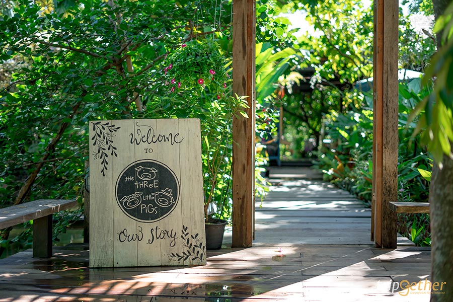 The Three Little Pigs Farm คาเฟ่บรรยากาศแสนร่มรื่นที่อยู่ในฟาร์มออร์แกนิกบนพื้นที่กว่า 6 ไร่นี้ มาในธีมนิทานสุดฮิตที่สมัยเด็กทุกคนคุ้นเคยกันดี ตามชื่อร้านที่แปลเป็นไทยว่า ลูกหมูสามตัว นั่นเอง ซึ่งที่ร้านก็มีลูกหมูให้ชื่นชมความน่ารักกันด้วย และด้วยความที่เป็นฟาร์มทางร้านยังมี เป็ด ห่าน ที่ว่ายน้ำอยู่ตามร่องสวน หรือใครอยากพายเรือเล่นชมสวนก็สามารถทำได้ ด้านเมนูมีทั้งอาหารคาว อาหารหวาน เครื่องดื่มเย็นๆ ให้เลือกกันหลากหลายเมนู ใครกำลังหาคาเฟ่บรรยากาศดีๆ นั่งกินเพลินๆ ชมสวนชิลล์ๆ แวะไปที่ The Three Little Pigs Farm ได้เลย