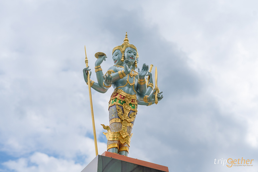 “เทวราชาแห่งสวรรค์ทุกชั้นฟ้าผู้เปี่ยมด้วยเมตตา” ท้าวอัมรินทราธิราช หรือ พระอินทร์ เทพผู้ปกครองสวรรค์และเหล่าทวยเทพ ปกปักษ์รักษา ให้ความช่วยเหลือเหล่ามวลมนุษย์ ตามความเชื่อของศาสนาพราหมณ์กล่าวว่าพระอินทร์เป็นเทพเจ้าที่ที่ดูแลปัดเป่าความชั่วร้ายในพื้นที่นั้นๆ อีกทั้งยังประทานพรแห่งความเจริญรุ่งเรืองอีกด้วย นอกจากนี้ในศาสนาพุทธพระอินทร์ยังเป็นเทวดาผู้มีเมตตาที่เปี่ยมล้ม ดังนั้นเชื่อกันว่าหากใครได้สักการะพระอินทร์แล้วนั้น จะปลอดภัยจากสิ่งชั่วร้าย มีความสขุสวัสดี และสมปรารถนานั่นเอง