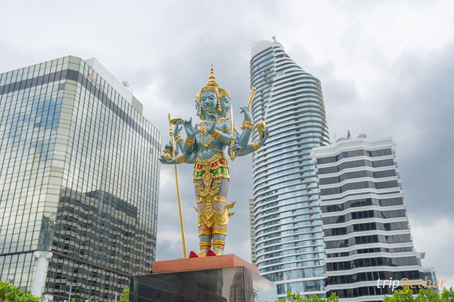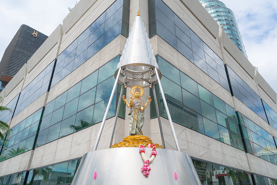“มหาเทพผู้ทรงประทานพรอันประเสริฐครอบจักรวาล” พระตรีมูรติ เป็นการรวมกันของมหาเทพ 3 องค์ ได้แก่ พระพรหมณ์ พระนารายณ์ และพระอิศวร ศาสนาพราหมณ์จึงถือว่าพระตรีมูรติเป็นเทพเจ้าที่ยิ่งใหญ่ในจักรวาล เนื่องจากเป็นการรวมกันขององค์มหาเทพผู้สร้าง ผู้รักษา และผู้ทำลาย การประทานพรของพระตรีมูรติจึงเป็นพรที่ประเสริฐและครอบคลุมทุกด้านและทุกความปรารถนา นอกจากนี้ชาวไทยยังเชื่อกันว่าพระองค์ยังประทานความสมหวังในเรื่องความรักอีกด้วย โดยวันเวลาที่เหมาะกับการบูชาพระตรีมูรติจะตรงกับวันพฤหัสบดี เวลา 09.30 น. และ 21.30 น. ซึ่งเป็นเวลาที่พระองค์เสด็จลงจากสวรรค์และรับคำอธิษฐาน โดยเทวรูปองค์พระตรีมูรติมีให้ได้สักการะขอพรกันบริเวณด้านหน้าของศูนย์การค้าเซ็นทรัลเวิลด์ และยังมีร้านค้าจำหน่ายเครื่องสักการะให้บริการอีกด้วย