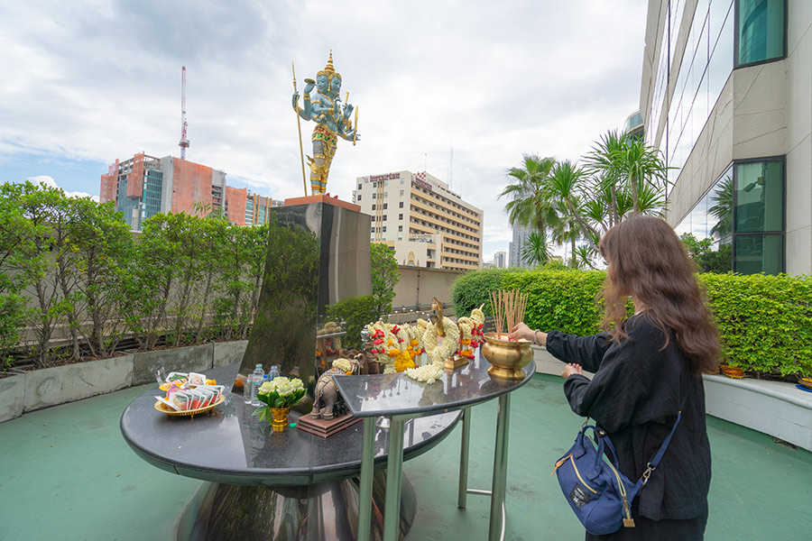“เทพเจ้าแห่งงานศิลป์และความสำเร็จทุกแขนง” พระพิฆเนศเป็นอีกหนึ่งองค์เทพที่เป็นที่เคารพบูชากันอย่างแพร่หลายของคนไทย โดยตามพระคัมภีร์ได้กล่าวไว้ว่าพระพิฆเนศเป็นพระผู้ทรงได้รับพรอันประเสริฐจากเหล่าทวยเทพทุกองค์ และไม่ว่าจะประกอบกิจการ พิธีใดๆ ต่างก็จะต้องสักการะบูชาพระพิฆเนศเป็นองค์แรกเสมอเพื่อเป็นการบูชาบรมครูแห่งศาสตร์ศิลป์และความสำเร็จ ดังนั้นหากผู้ใดได้กราบไหว้และบูชาองค์พระพิฆเนศก็จะประสบความสำเร็จในทุกเรื่องรวมทั้งไม่ว่าจะประกอบกิจการงานใดๆ ก็จะไร้ซึ่งอุปสรรค โดยบริเวณหน้าศูนย์การค้าเซ็นทรัลเวิล์ด จะมีเทวรูปพระพิฆเนศประดิษฐานอยู่ พร้อมกับร้านค้าจำหน่ายชุดเครื่องสักการะให้บริการ