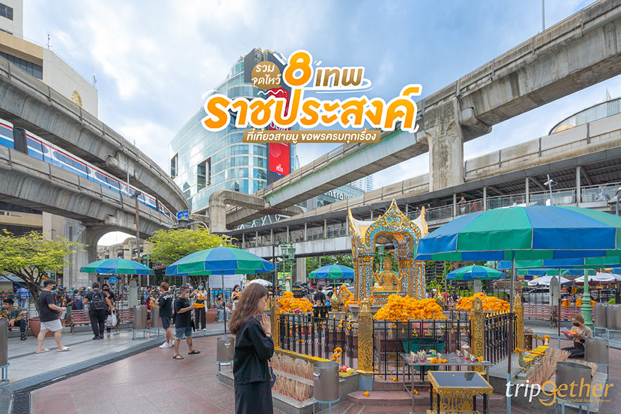 “แยกราชประสงค์” นอกจากจะเป็นย่านศูนย์การค้าและย่านท่องเที่ยวชื่อดังของกรุงเทพแล้ว บริเวณแห่งนี้ยังถือว่าเป็นสถานที่ศักดิ์สิทธิ์ที่คราคร่ำไปด้วยผู้มีศรัทธาและความหวังจำนวนมาก เพราะเป็นที่ประดิษฐานของเหล่าองค์เทพที่มีถึง 8 องค์ด้วยกัน ซึ่งตามแต่ละจุดต่างก็มีผู้คนทั้งชาวไทยและชาวต่างชาติดั้นด้นเดินทางมาเพื่อขอพรในด้านต่างๆ  ในวันนี้ทริปเก็ทเตอร์จะพาเพื่อนๆ ไปไหว้เหล่าองค์เทพพร้อมๆ กัน กับ รวมจุดไหว้ 8 เทพ ราชประสงค์ ที่เที่ยวสายมู ขอพรครบทุกเรื่อง
